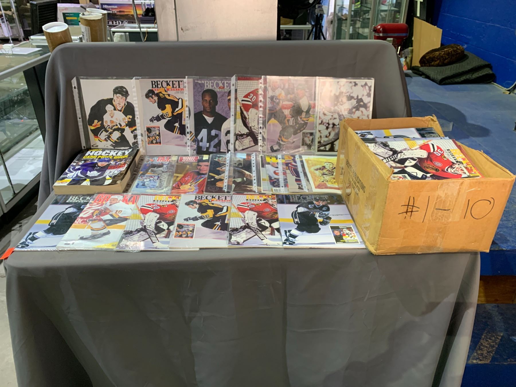 BOX OF ASSORTED SPORTS MAGAZINES & PRINTS (SOME AUTOGRAPHED)