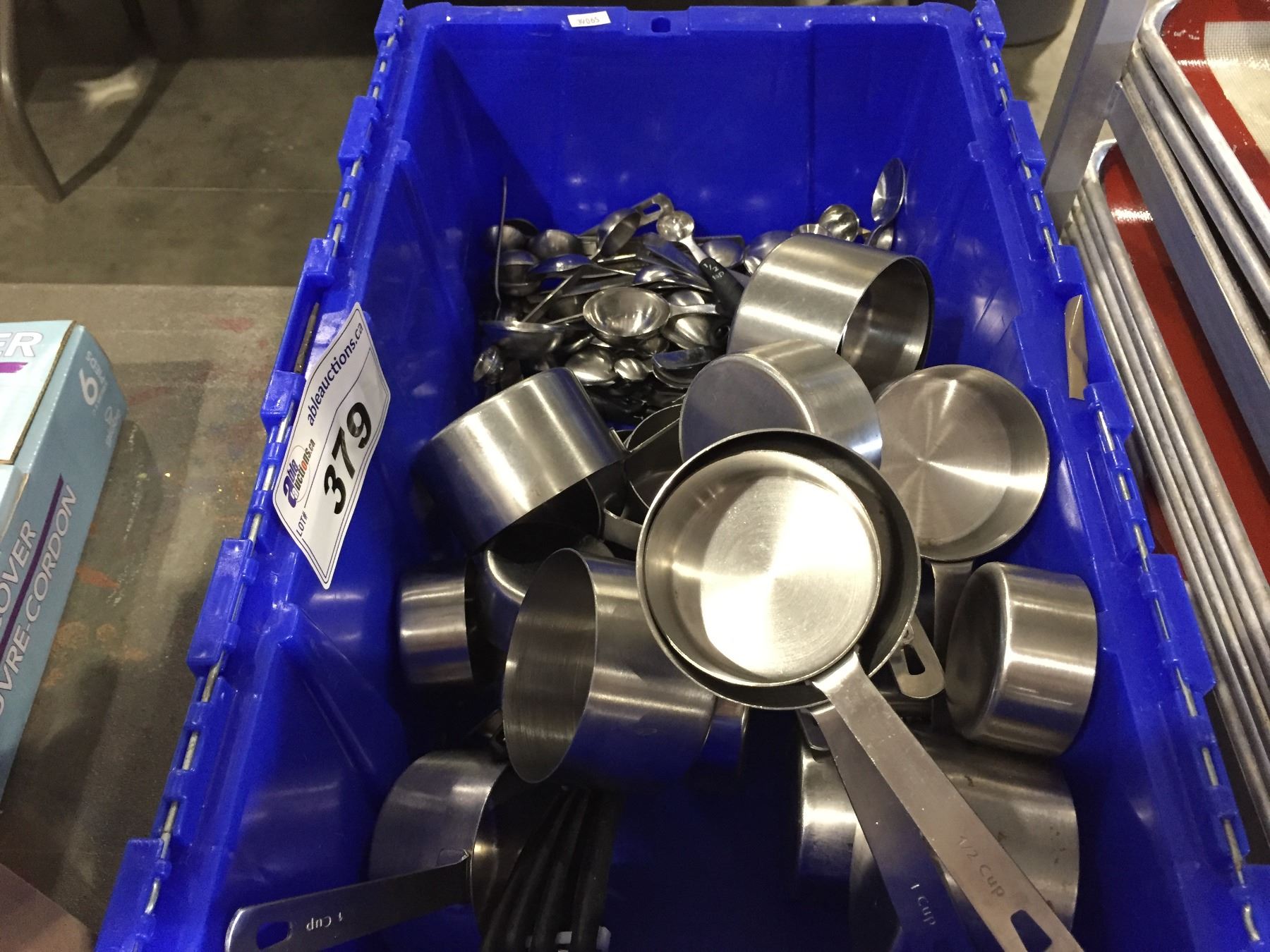 BOX OF ASSTD STAINLESS STEEL MEASURING CUPS AND SPOONS