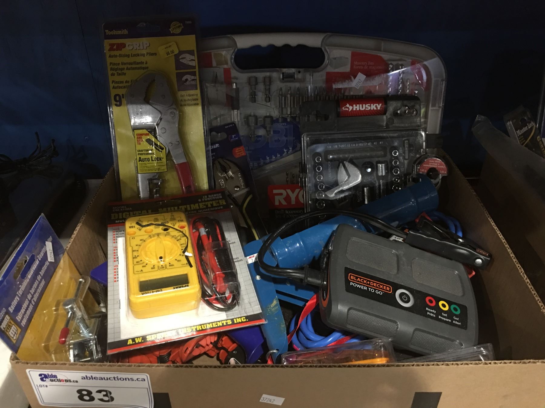 BOX OF ASSTD TOOLS HARDWARE & MISC. - A