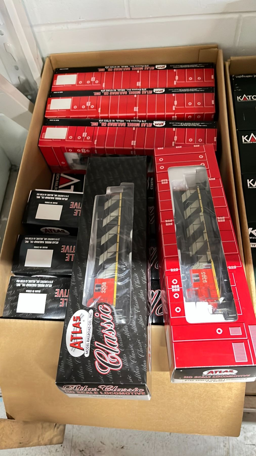BOX OF ATLAS CLASSIC HO SCALE LOCOMOTIVE MODEL TRAINS - CANADIAN NATIONAL #3208 & CN #9305