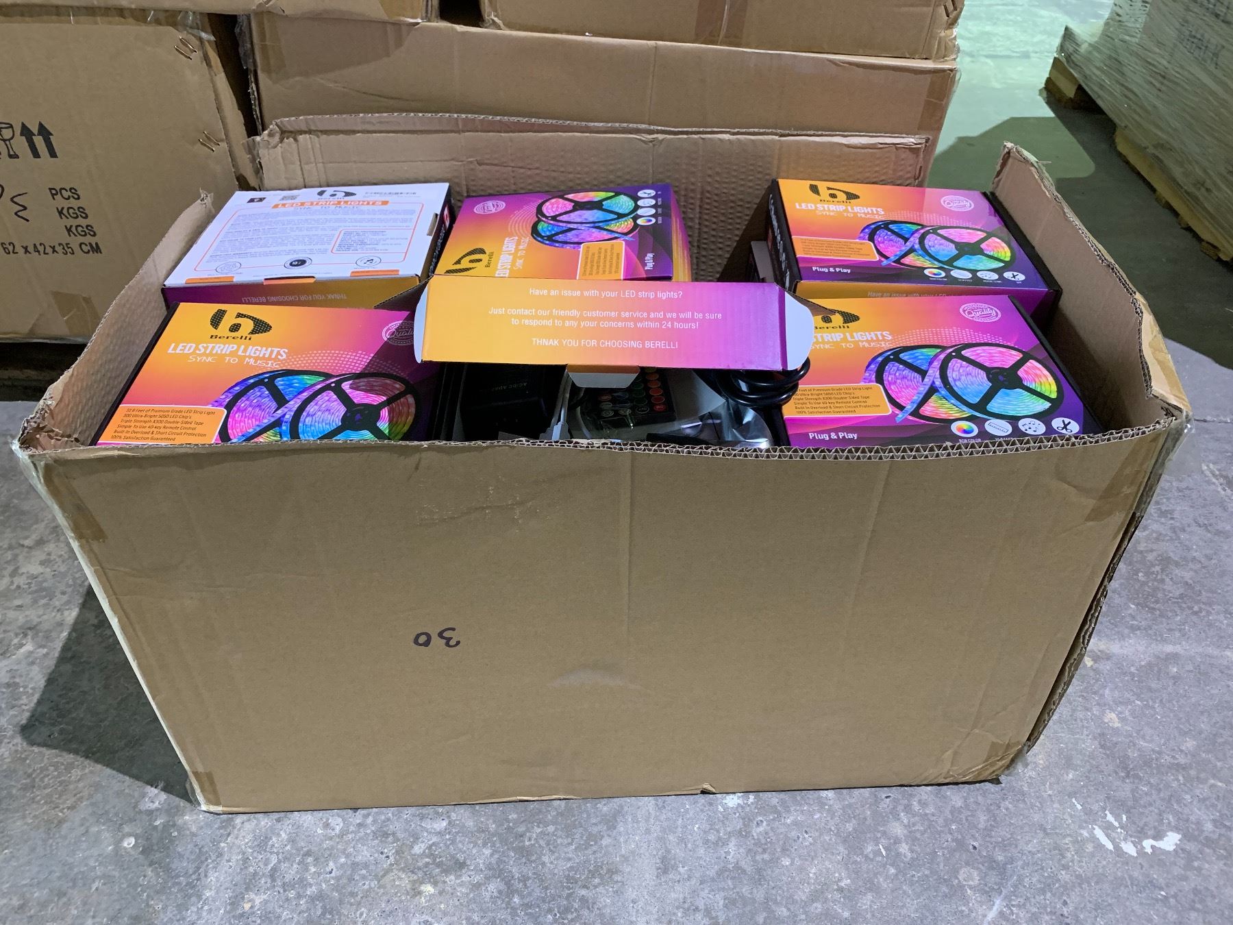 BOX OF BERELLI BLUETOOTH LED SYNC TO MUSIC STRIP LIGHTS