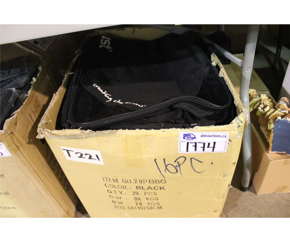 BOX OF BLACK MONOGRAMED DUFFEL BAGS