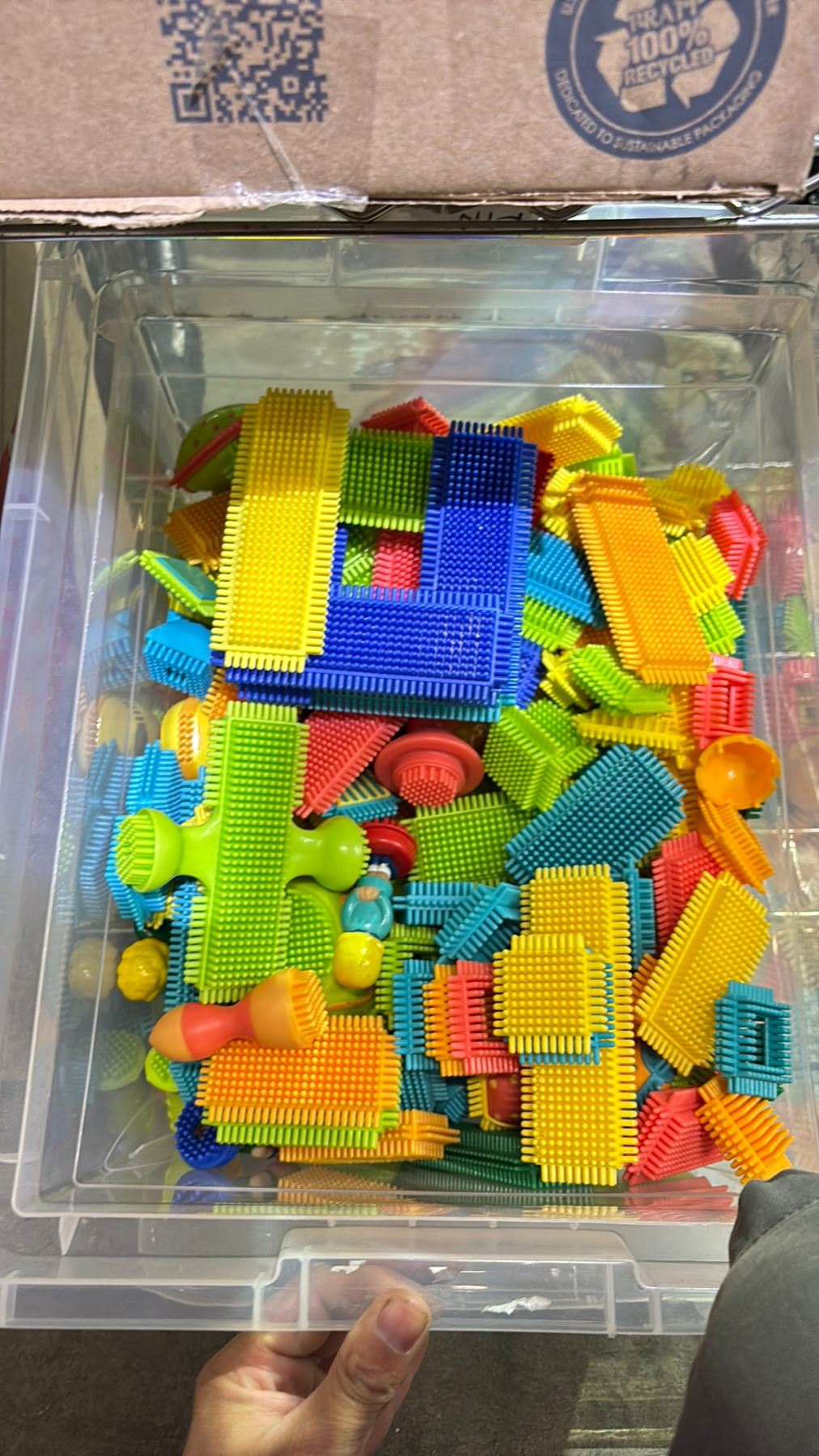 BOX OF BRISTLE BLOCKS & 2 BOXES OF CARDBOARD BRICK BLOCKS