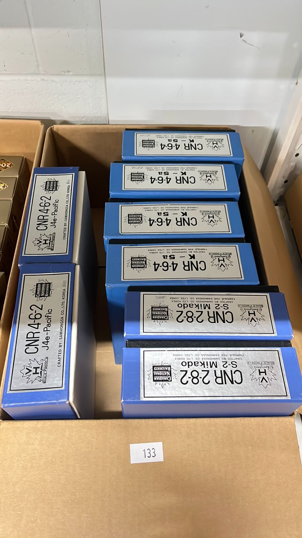 BOX OF CANADIAN NATIONAL RAILWAYS MODEL TRAINS - 4-6-2 J4E-PACIFIC, CNR 2-8-2 S-2 MIKADO & CNR 4-6-4 K-5A