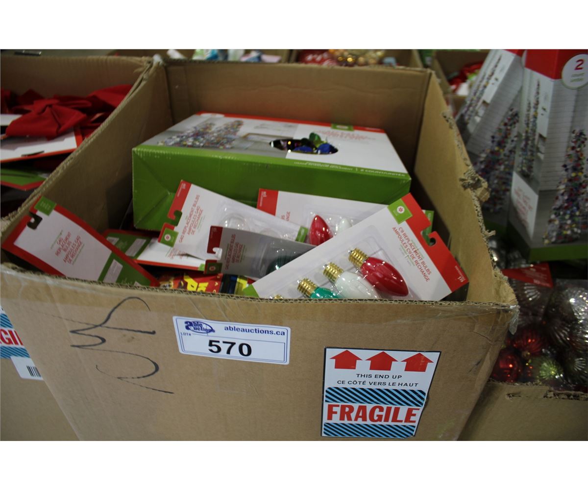 BOX OF CHRISTMAS DECORATIONS