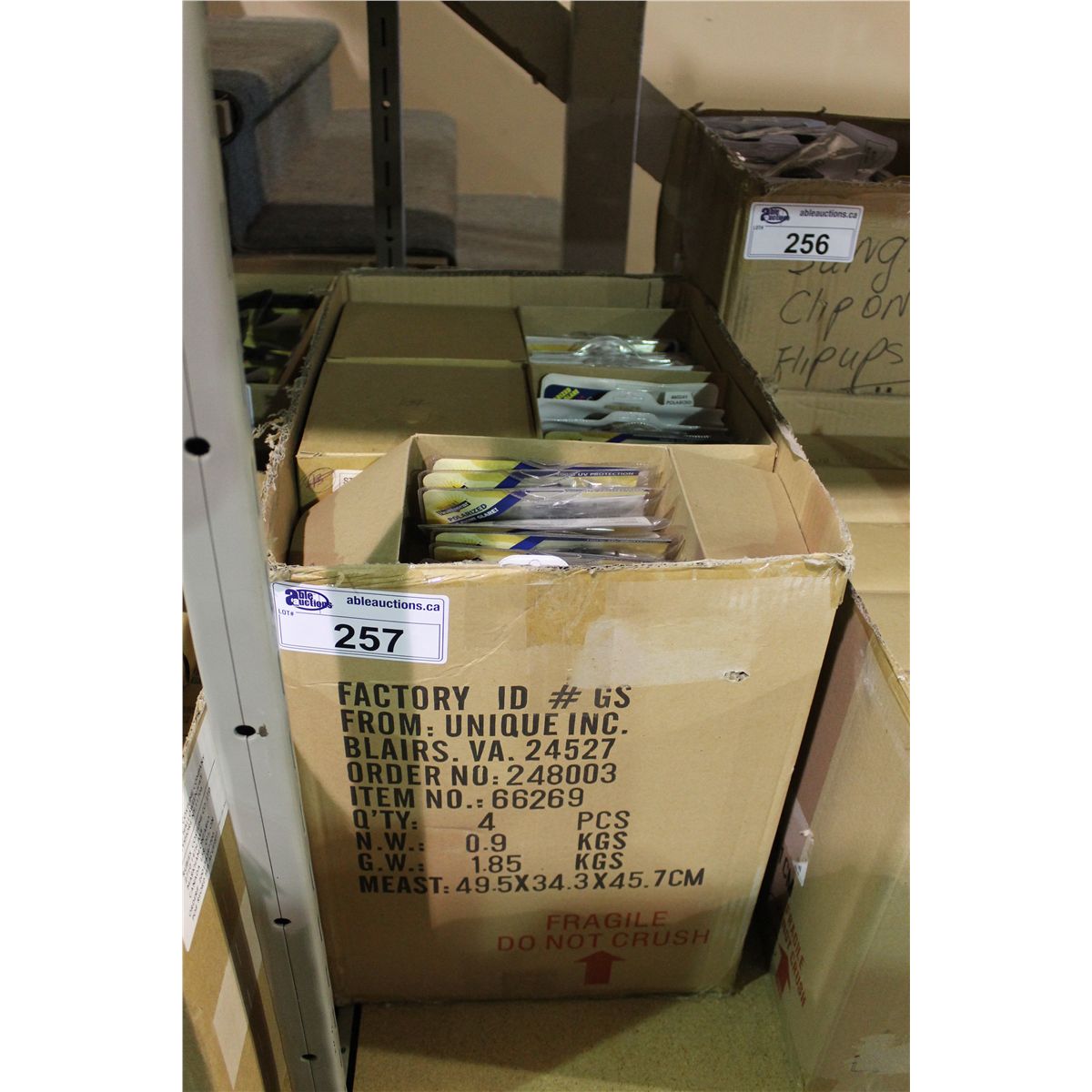 BOX OF CLIP ON SUNGLASSES