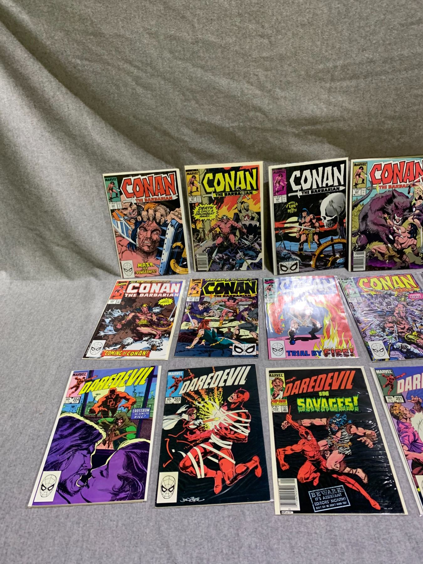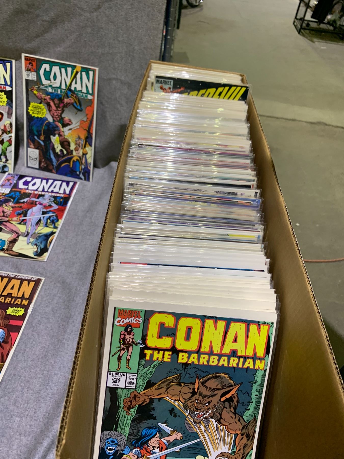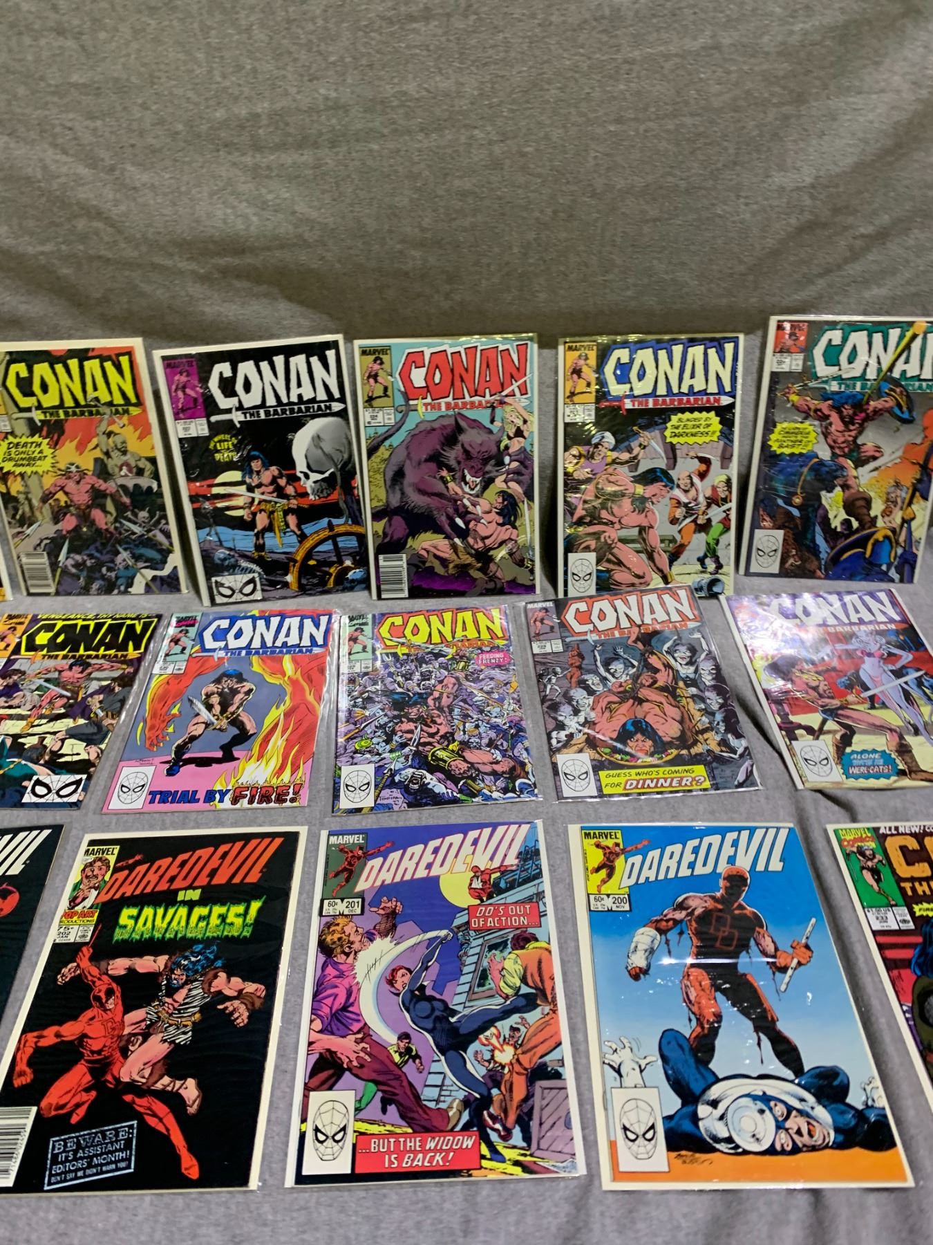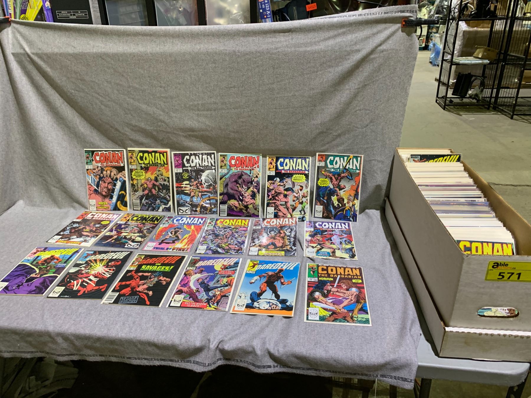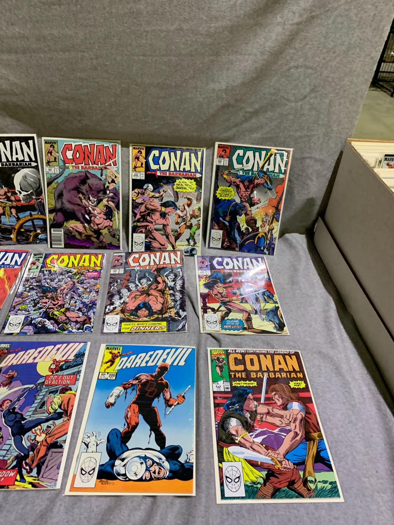 BOX OF COMIC BOOKS INCLUDING; MANY CONAN, DAREDEVIL AND MORE