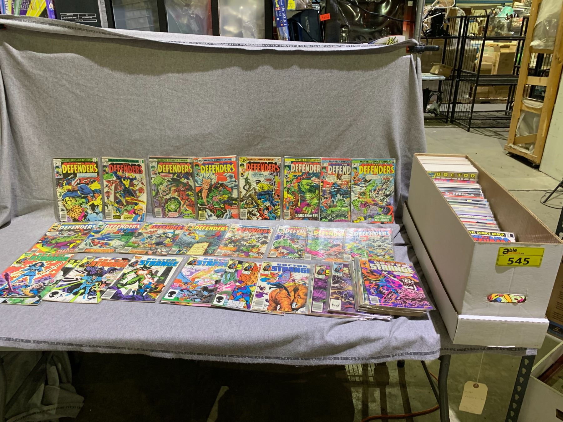 BOX OF COMIC BOOKS INCLUDING; THE DEFENDERS, DR, STRANGE, AND MORE