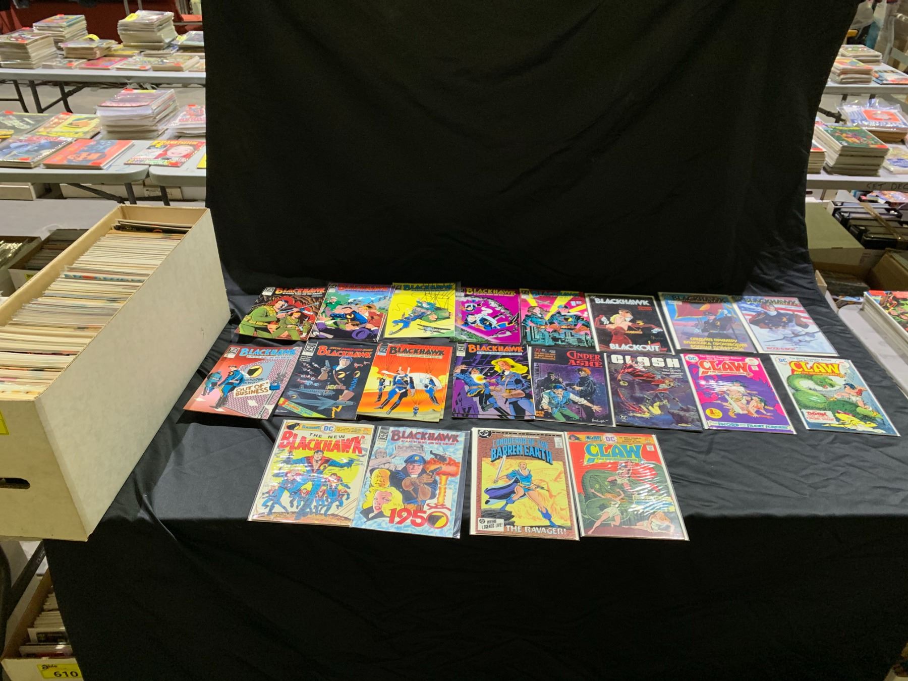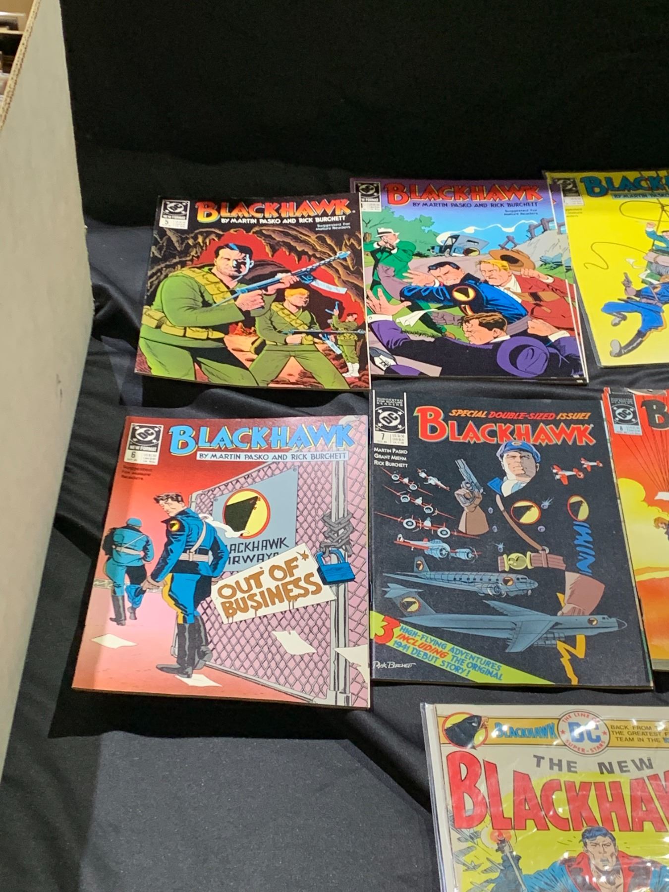 BOX OF COMIC BOOKS INCLUDING; THE NEW BLACK HAWK, CHECKMATE, BLACK HAWK, CINDER AND ASHE AND MORE