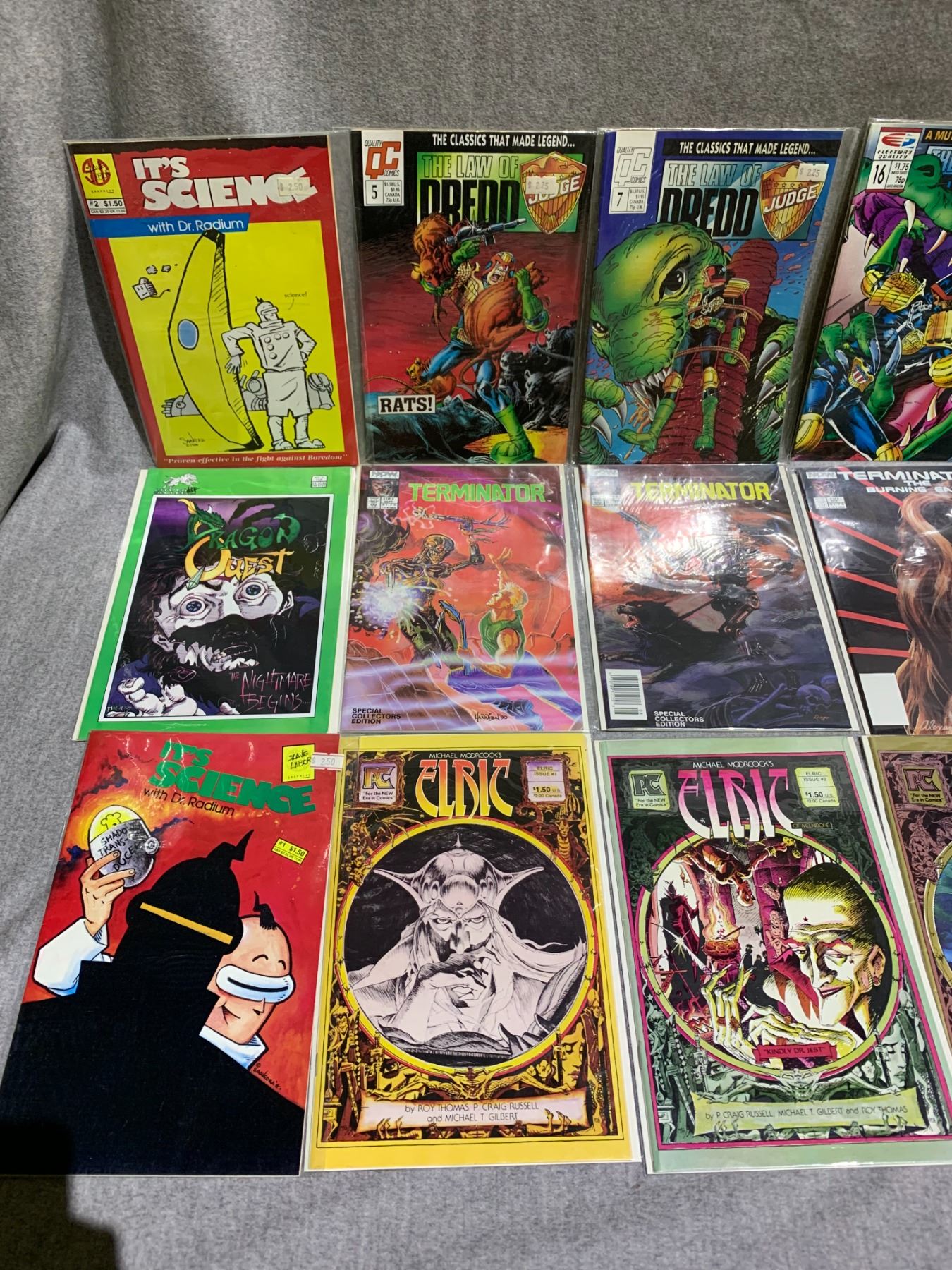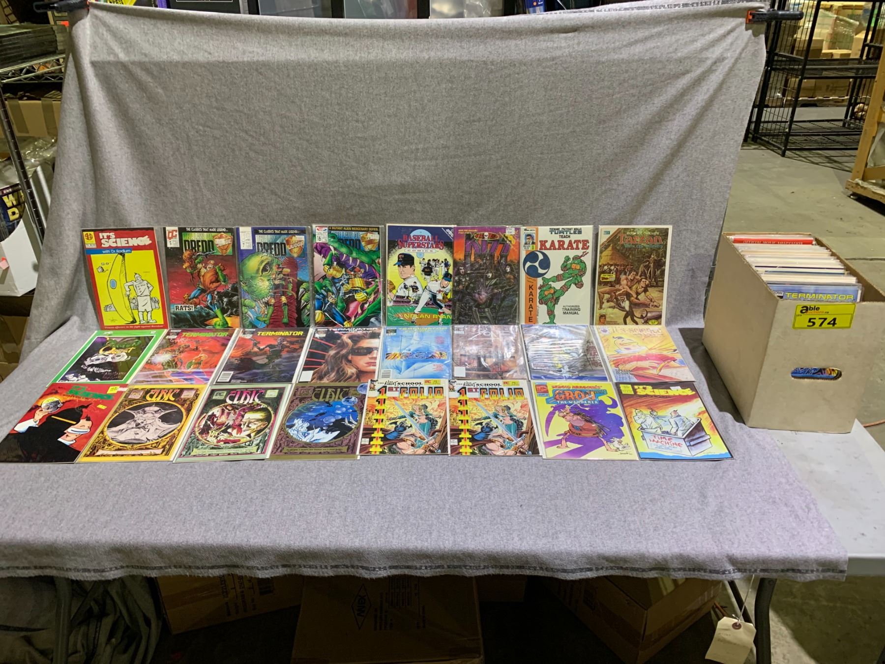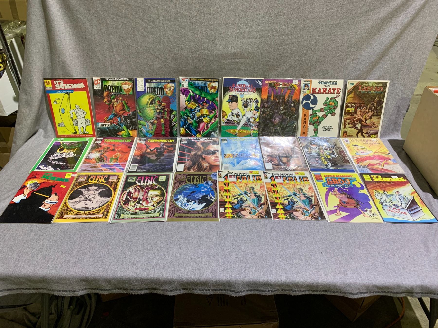 BOX OF COMIC BOOKS INCLUDING; THE TERMINATOR, TWILIGHT ZONE, THIRD WORLD WAR, FOG CITY, BASEBALL ...