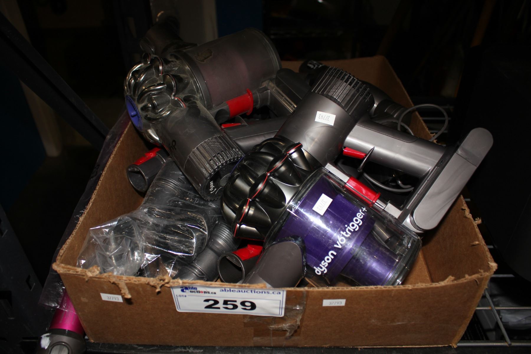 BOX OF DYSON VACUUMS / PARTS
