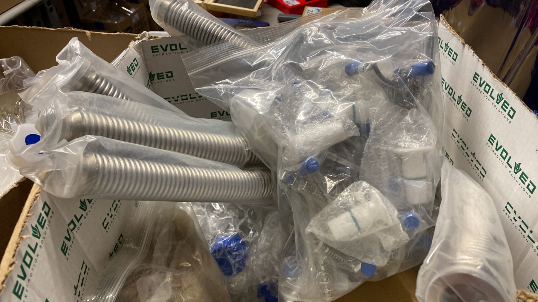 BOX OF E-LAB ASSORTED HIGH QUALITY LABORATORY TUBE GLASS EQUIPMENT
