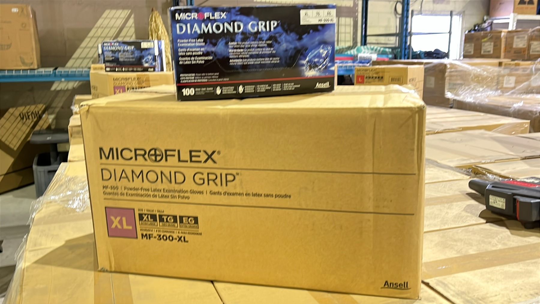 BOX OF EXTRA LARGE MICROFLEX DIAMOND GRIP LATEX GLOVES