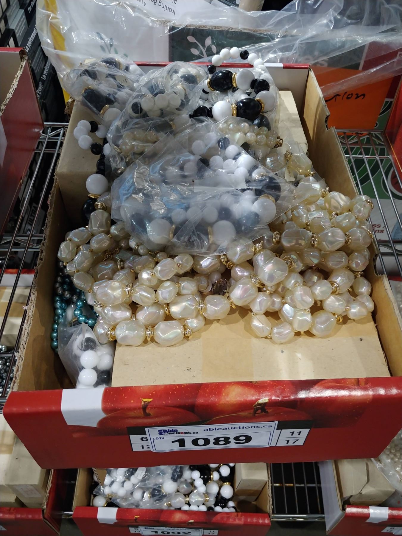 BOX OF GLASS BEADED NECKLACES, MADE IN EUROPE