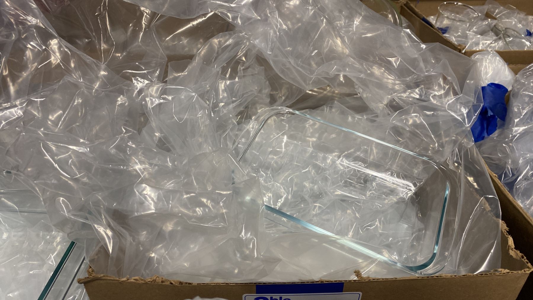 BOX OF GLASS LABORATORY TRAYS / BAKING DISHES
