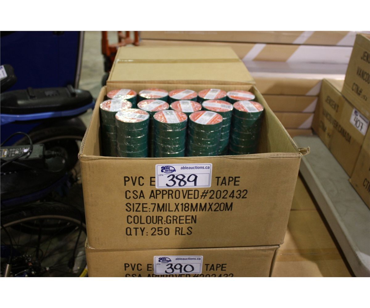 BOX OF GREEN ELECTRICAL TAPE 250 ROLLS