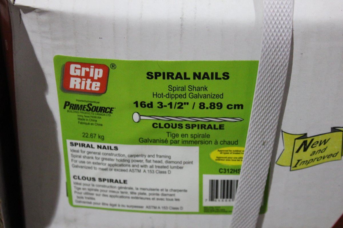 BOX OF GRIP RITE 16D X 3 1/2" SPIRAL NAILS