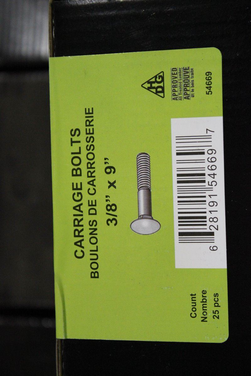 BOX OF GRIP RITE 3/8  X 9 CARRAIGE BOLTS