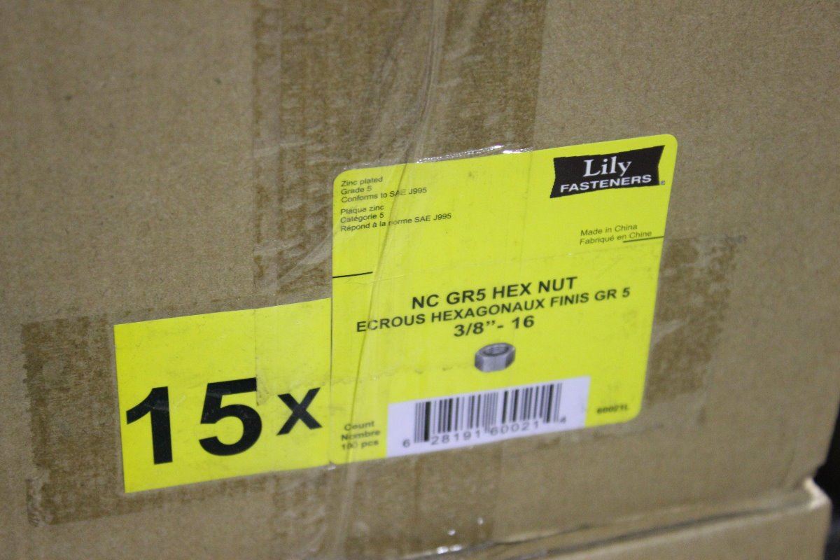 BOX OF GRIP RITE NC GR5 3/8" HEX NUTS