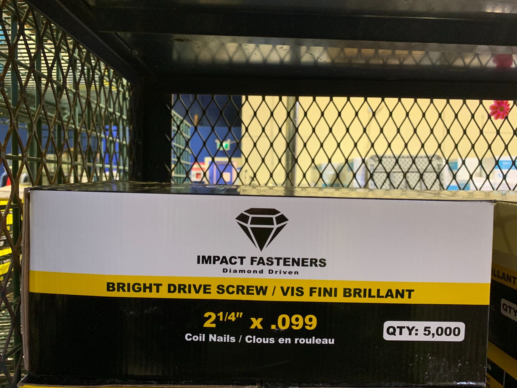 BOX OF IMPACT FASTENERS BRIGHT DRIVE SCREW 2-1/4" X .099 COIL NAILS 5000 COUNT