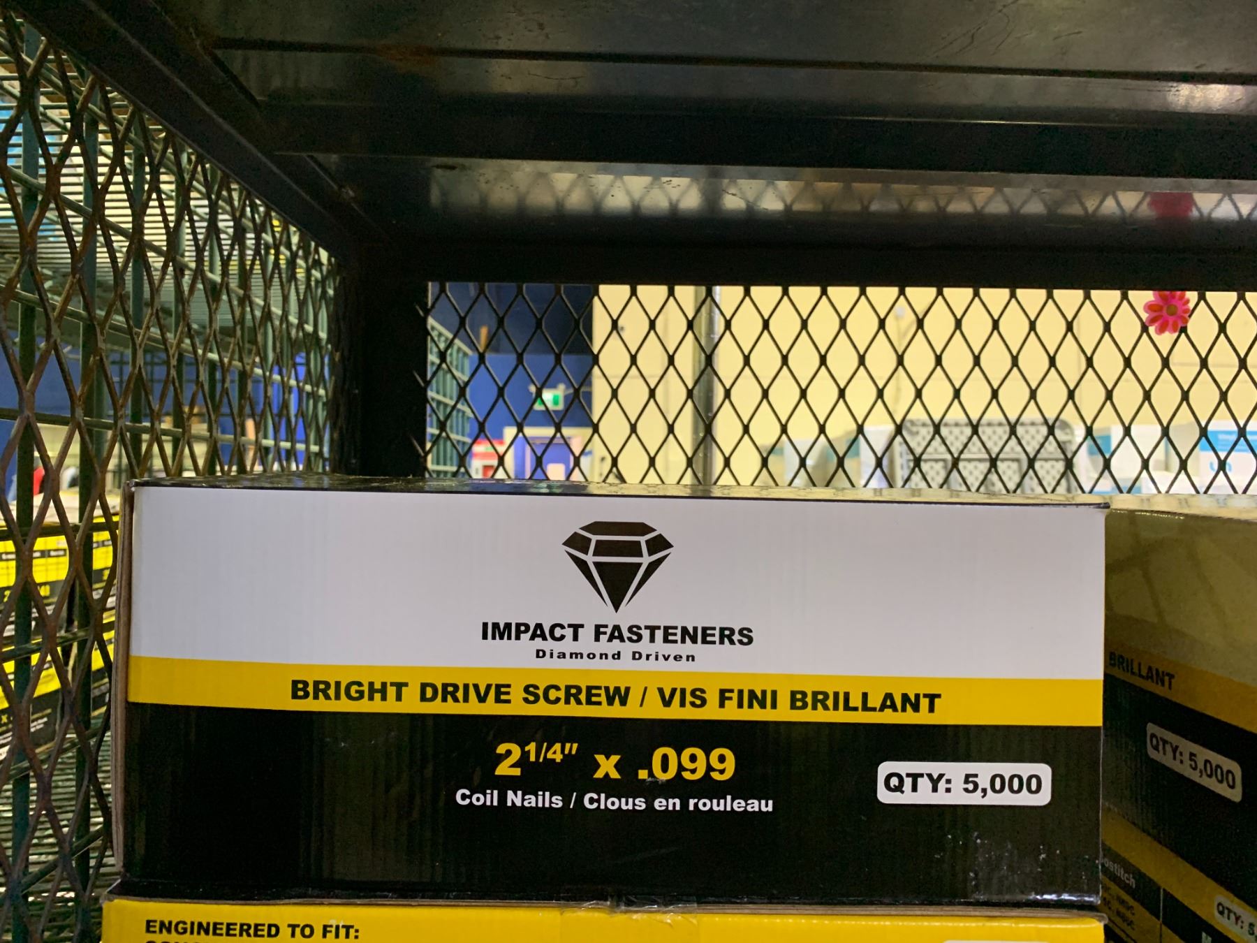 BOX OF IMPACT FASTENERS BRIGHT DRIVE SCREW 2-1/4  X .099 COIL NAILS 5000 COUNT