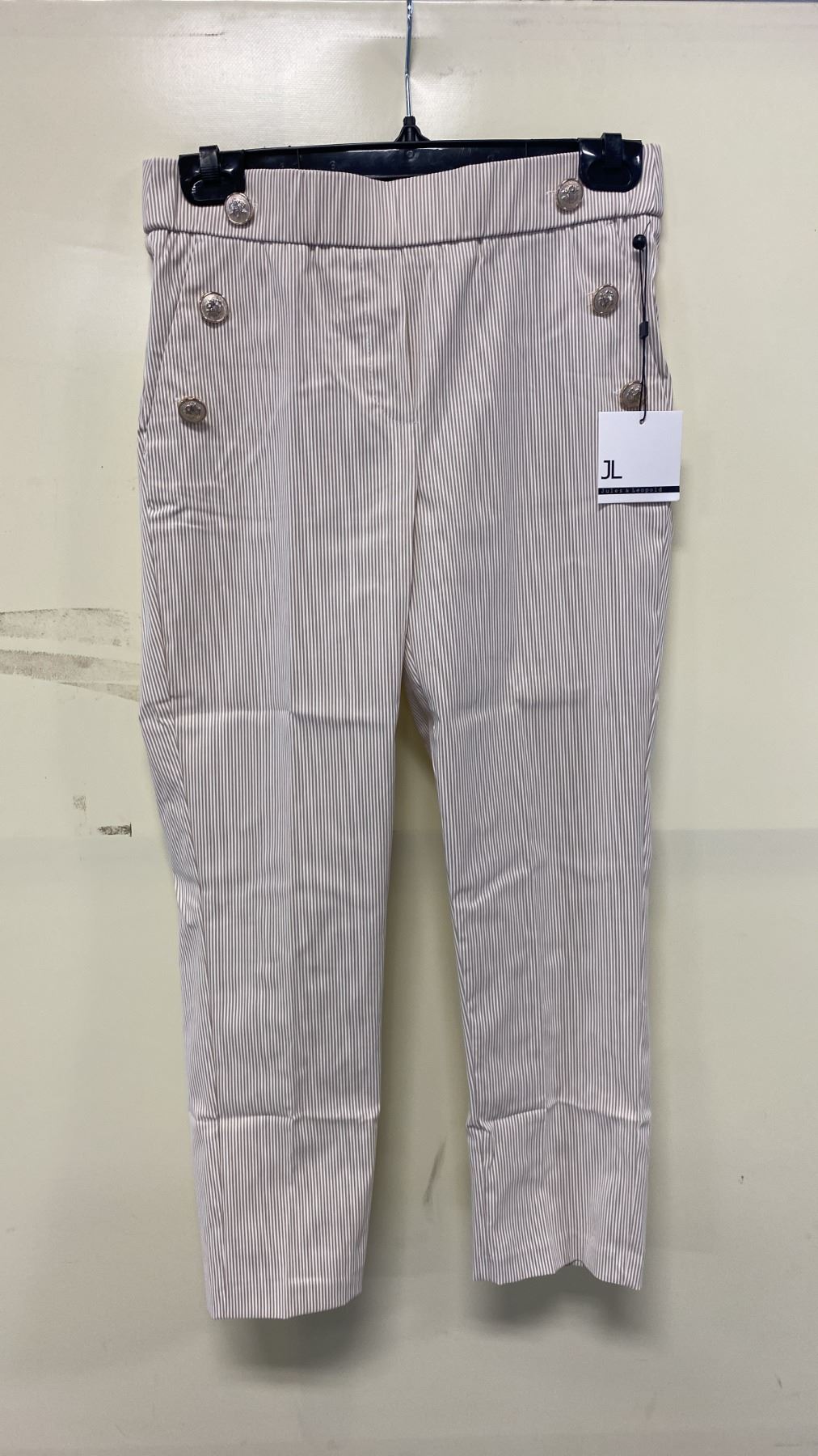 BOX OF JULES & LEOPOLD ASSORTED IVORY BEIGE STRIPE PULL ON SLIM LEG CROP CAPRI PANTS *APPROX. 48 PCS PER BOX*