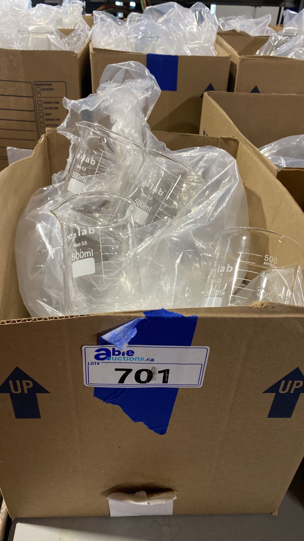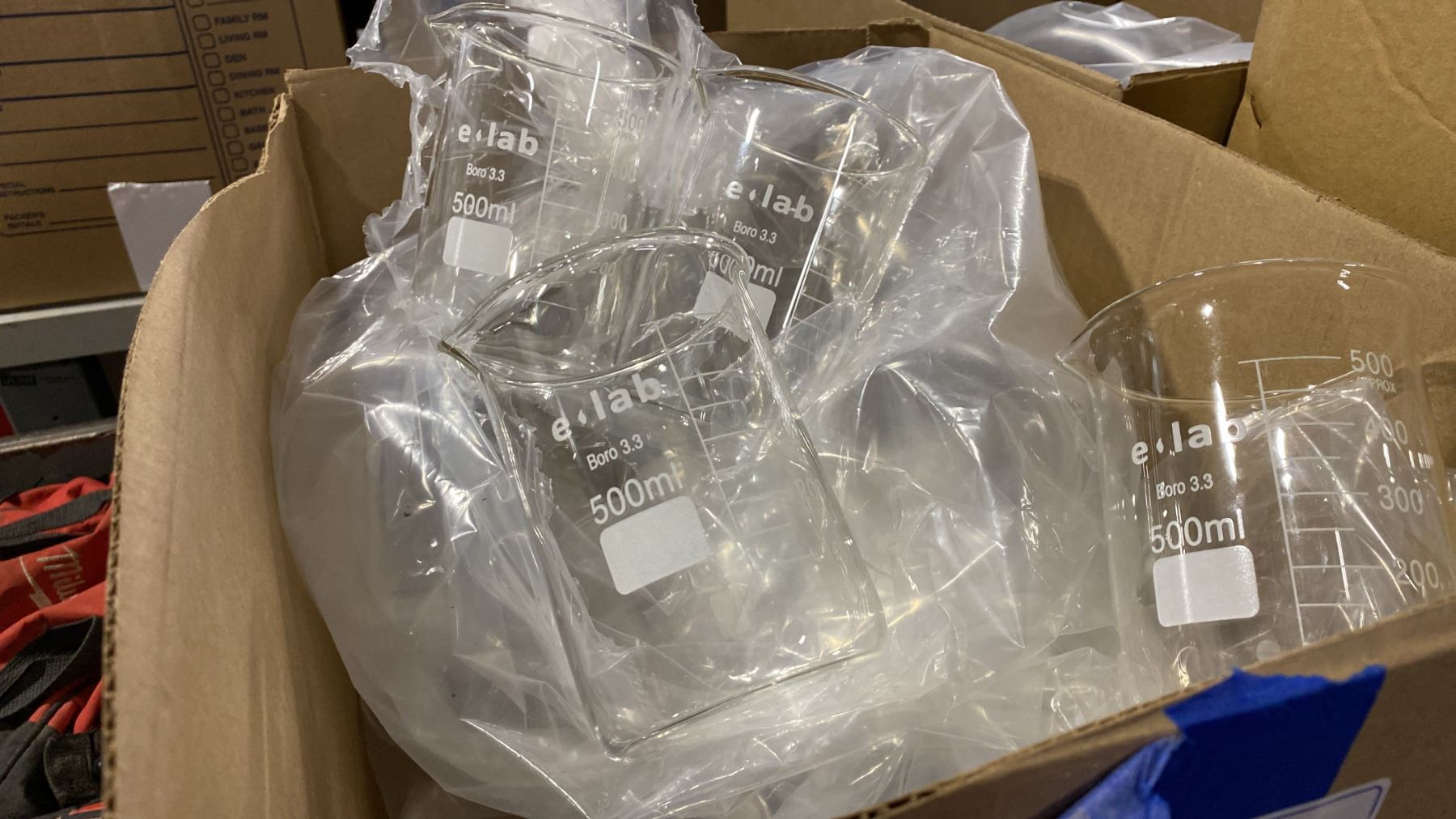 BOX OF LABORATORY GLASS BEAKERS
