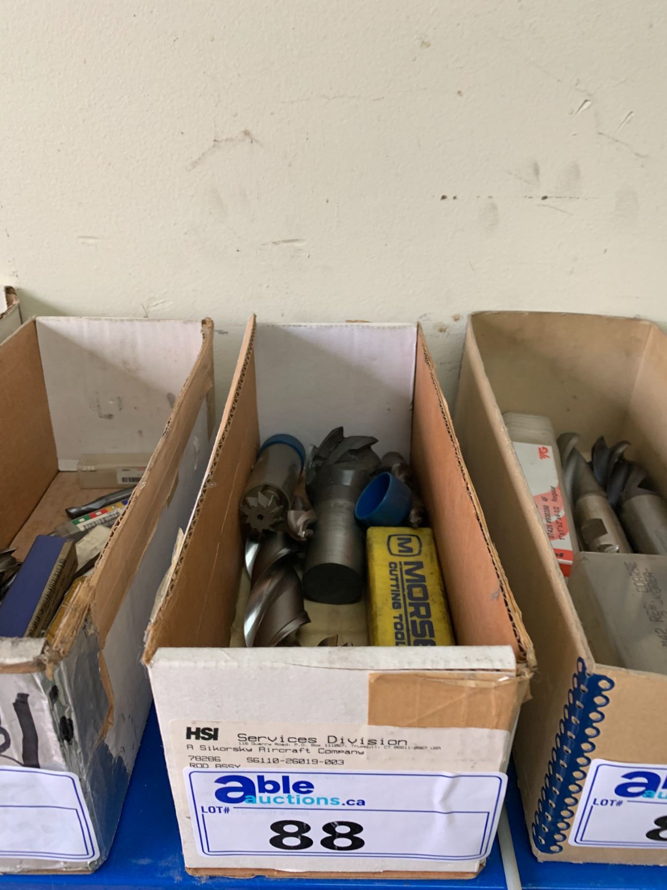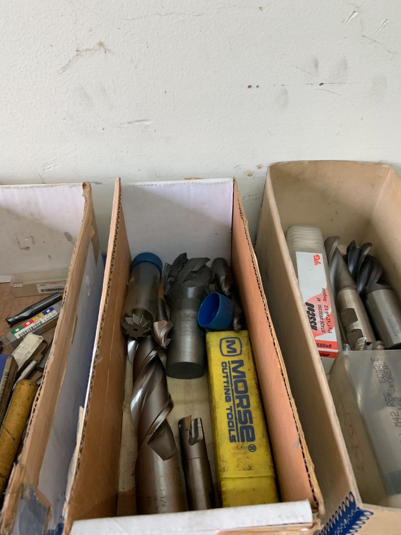 BOX OF MACHINIST TOOLS-ASSORTED LARGE SIZE END MILLS & CUTTERS