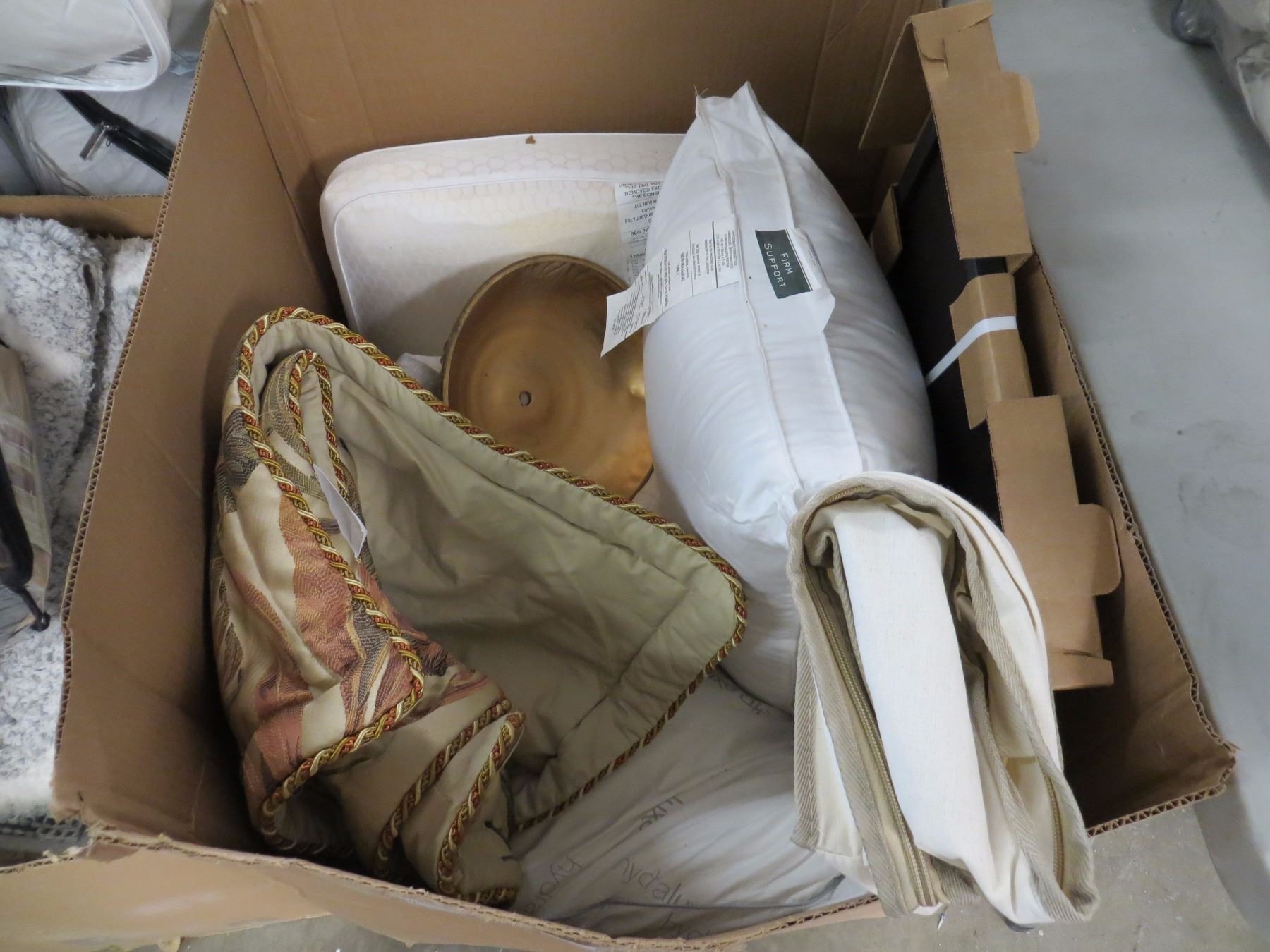 BOX OF MISC BEDDING /PILLOWS