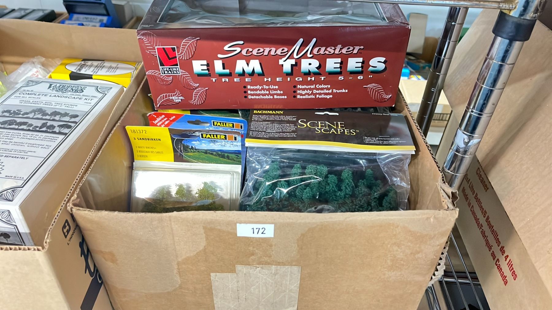 BOX OF MODEL TRAIN SCENERY/LANDSCAPE ACCESSORIES