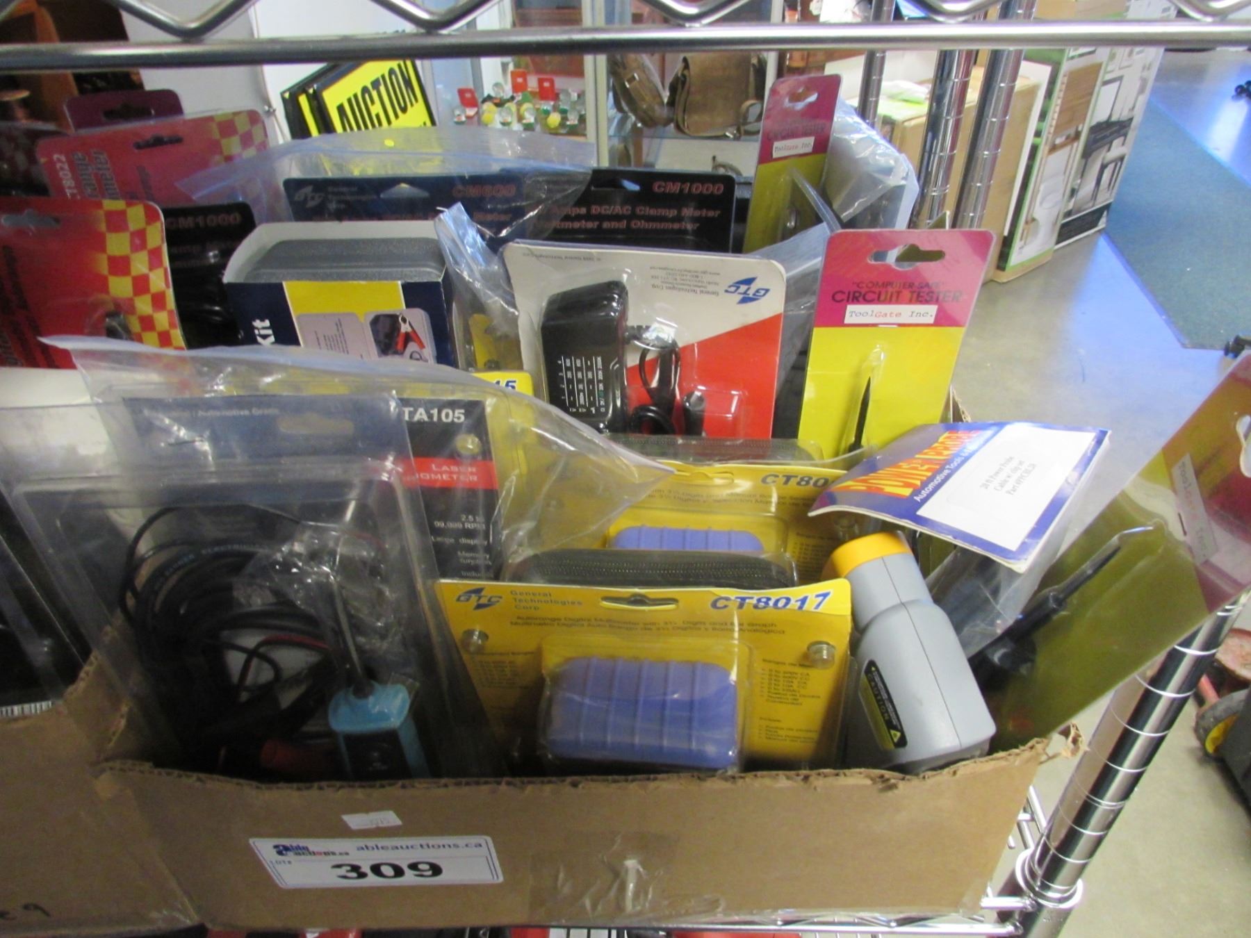 BOX OF MULTIMETERS, TACHOMETERS, TESTERS, ETC