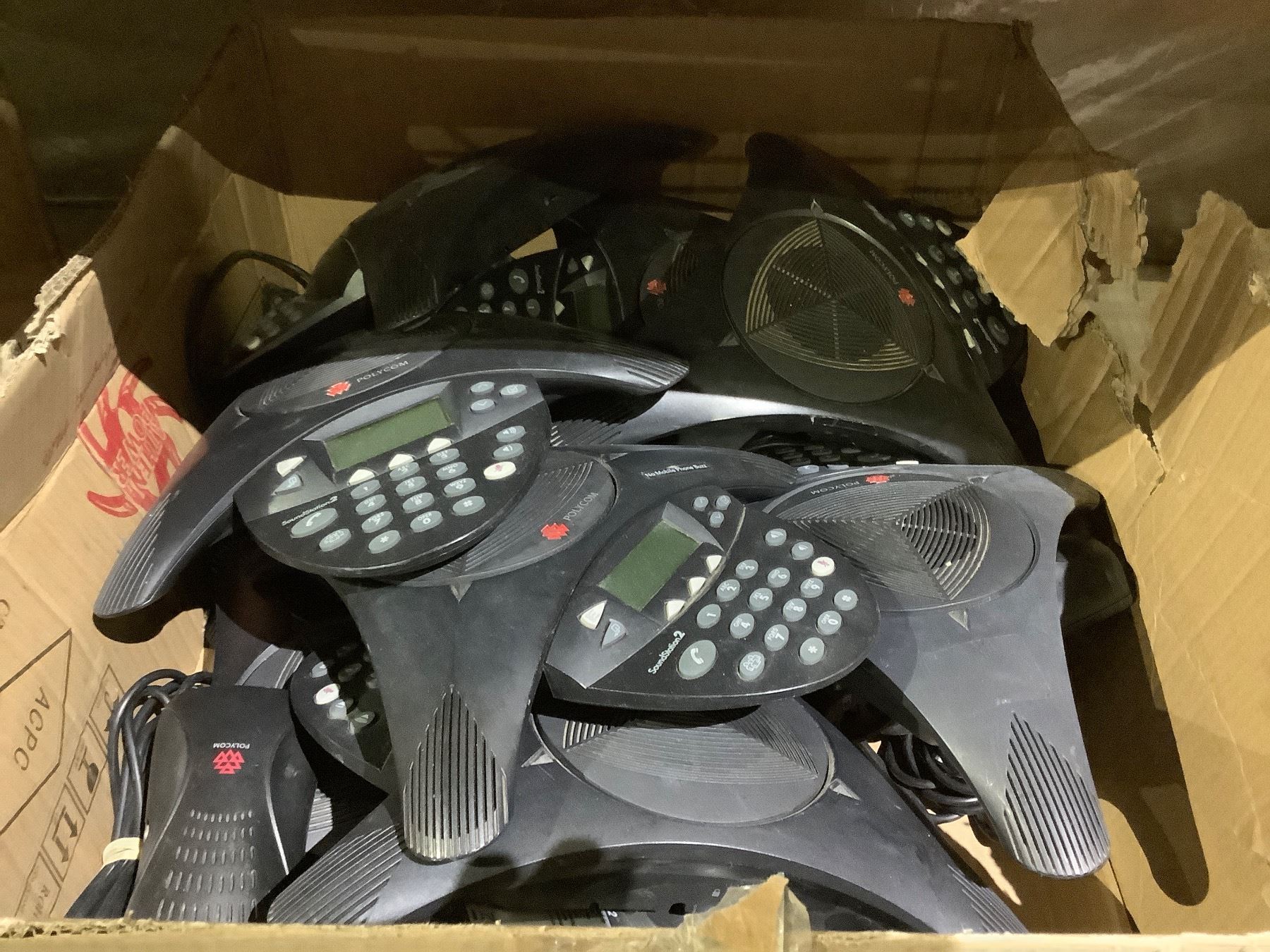 BOX OF POLYCOM CONFERENCE CALL PHONES