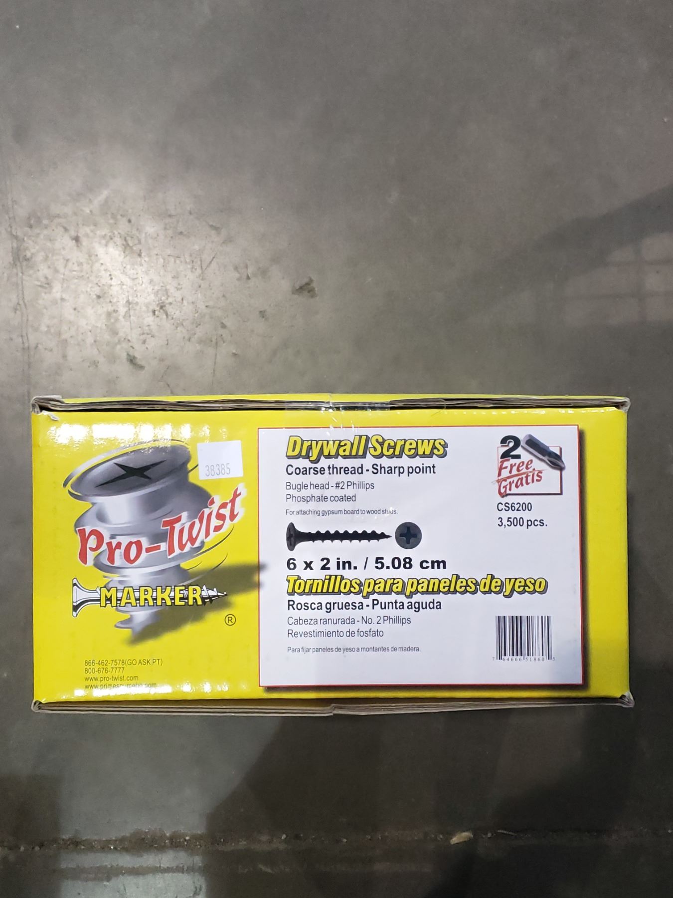 BOX OF PR-TWIST MARKER DRYWALL SCREWS 3500 COUNT 6X2 IN.