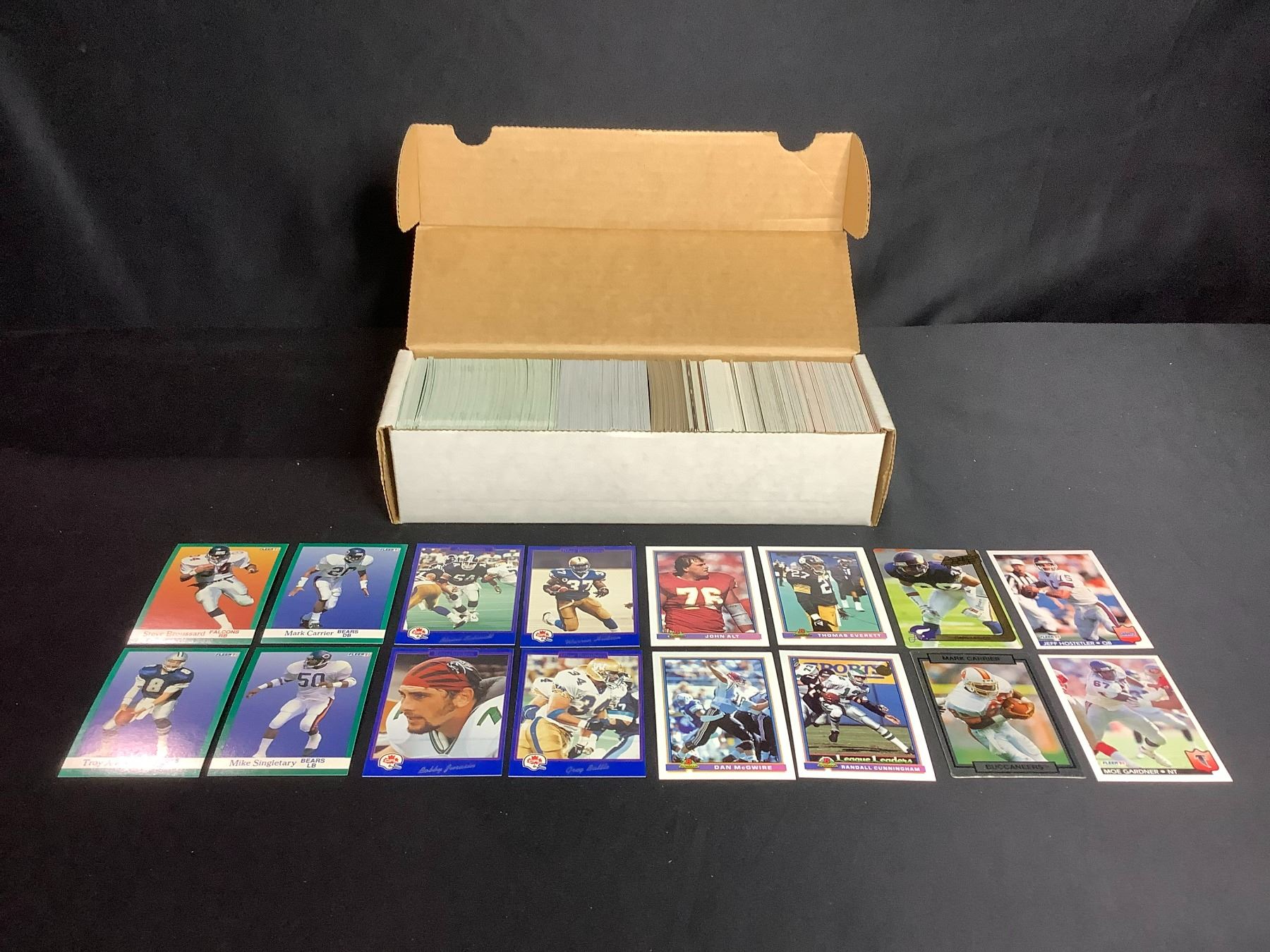 BOX OF PRO SET, FLEER, AND BOWMAN FOOTBALL CARDS