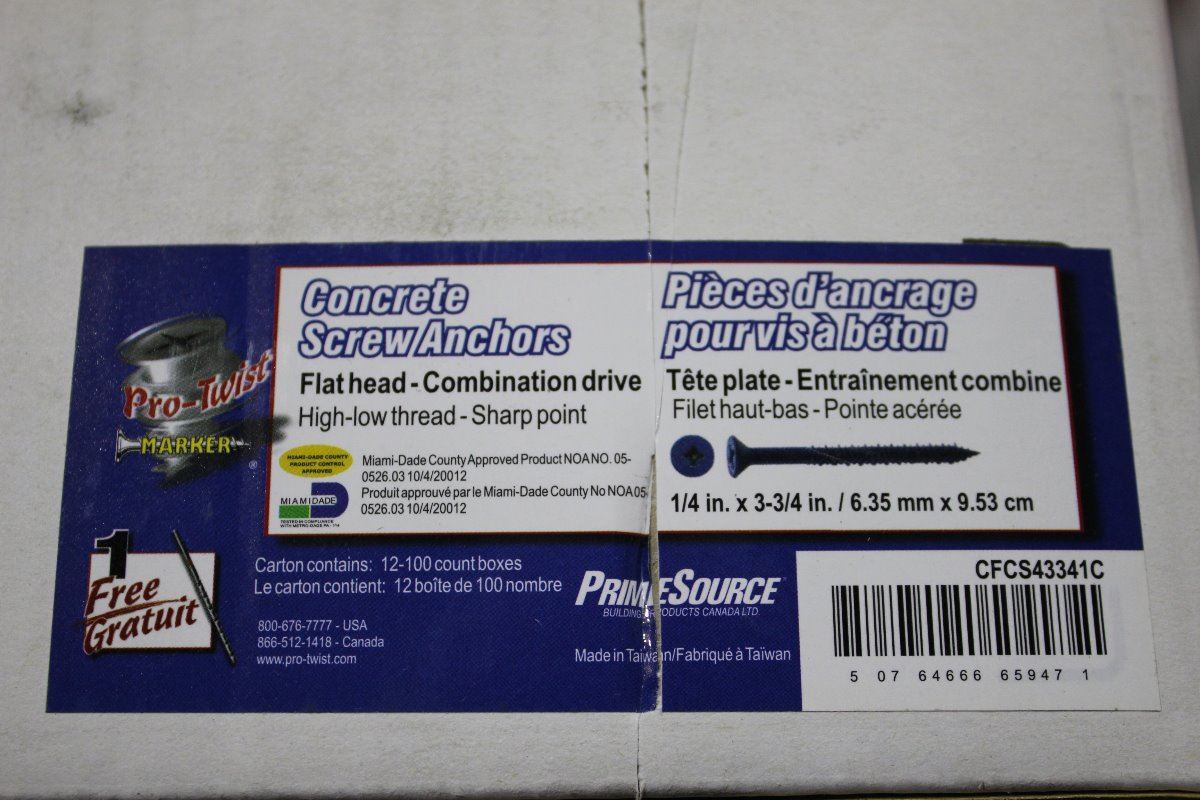 BOX OF PRO TWIST 2 1/4 X 3/16" CONCRETE SCREW ANCHORS