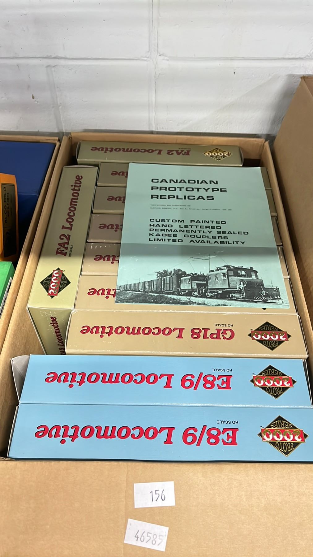 BOX OF PROTO 2000 SERIES E8-9 LOCOMOTIVE & PROTO 2000 SERIES GP18 LOCOMOTIVE HO SCALE MODEL TRAINS