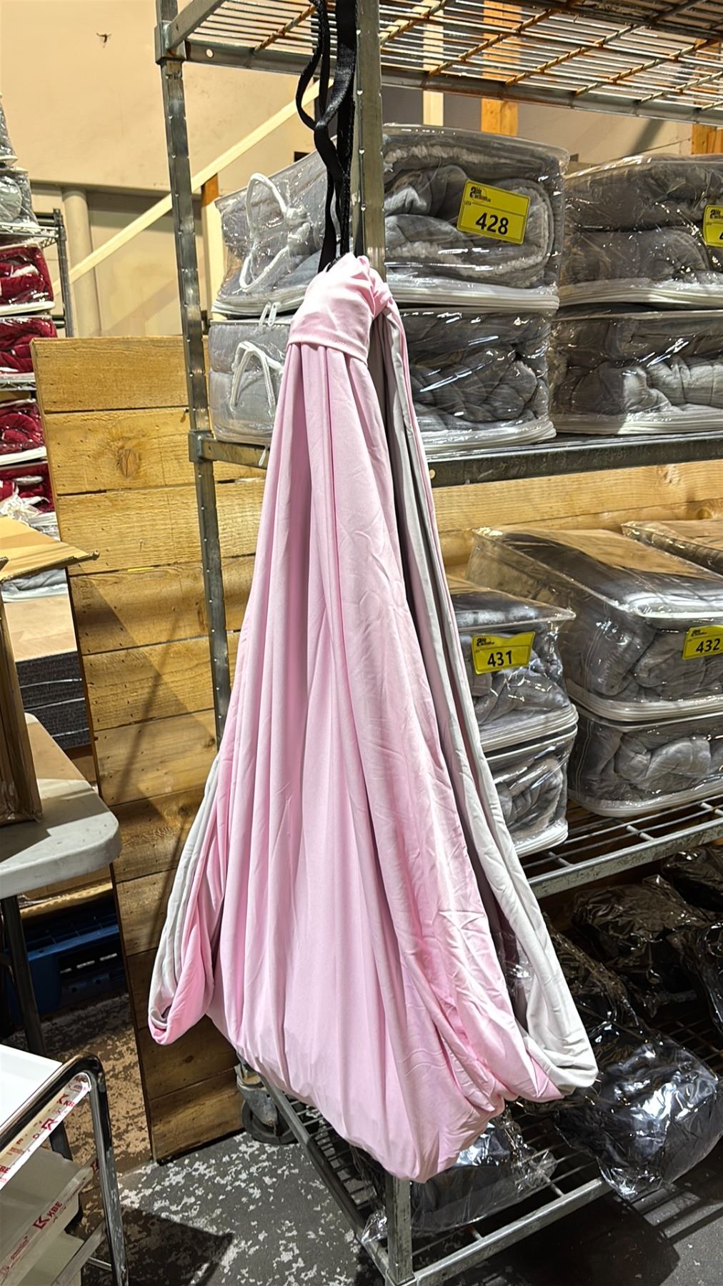 BOX OF REVERSABLE PINK & GREY HAMMOCK SWINGS (EACH ONE HAS A PLUSH TOY & FIDGET POPPER)