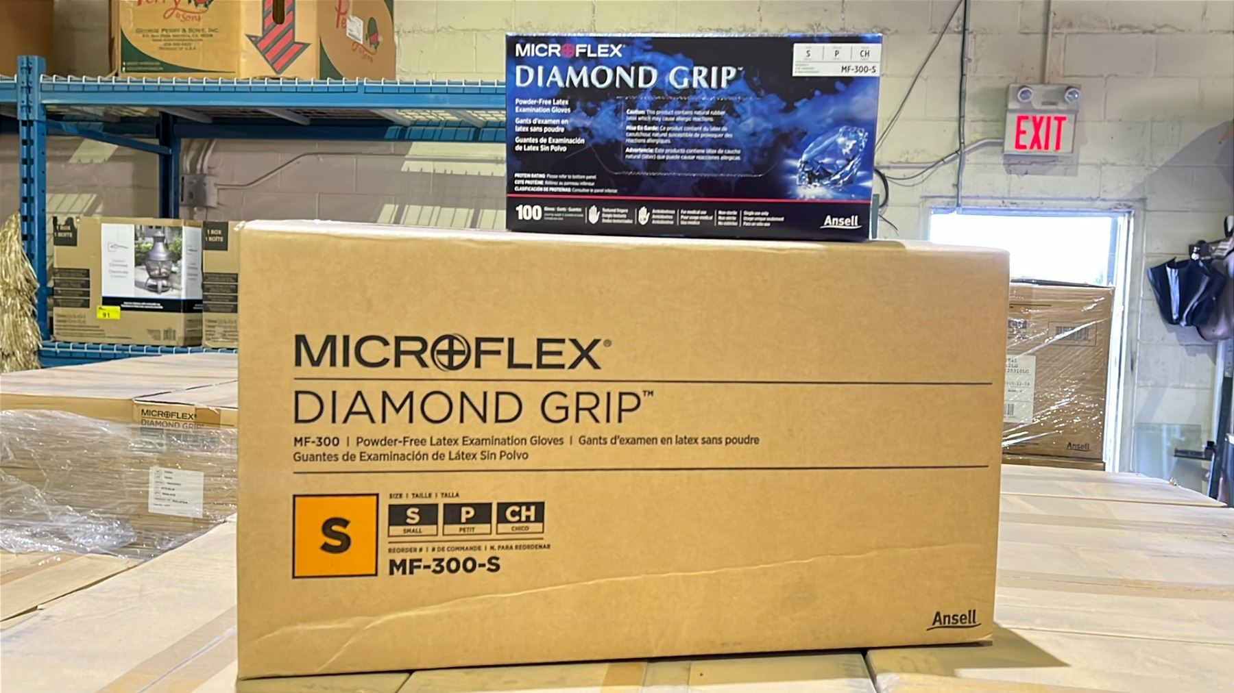 BOX OF SMALL MICROFLEX DIAMOND GRIP LATEX GLOVES