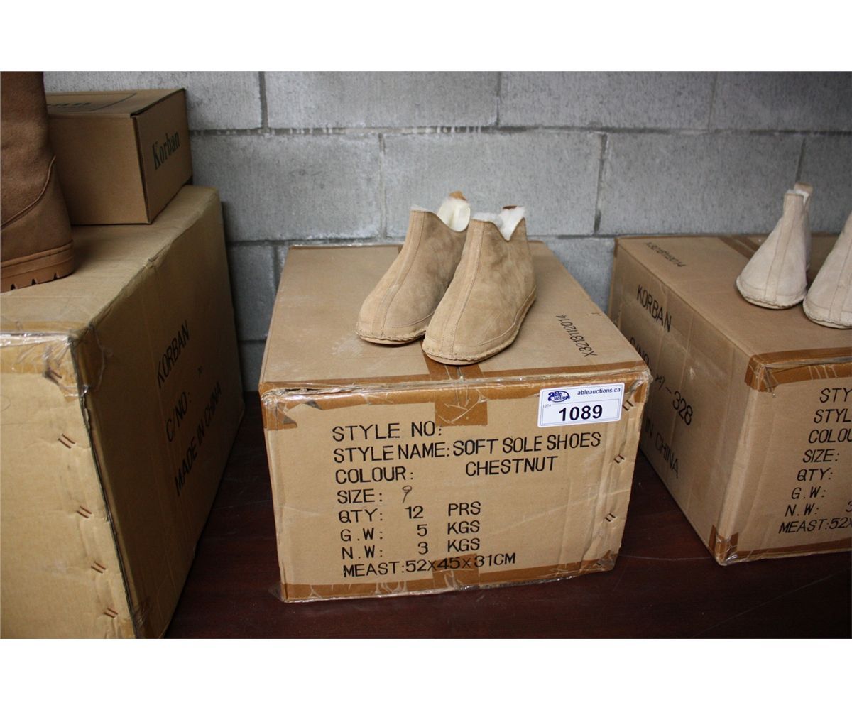 BOX OF SOFT SOLE CHESTNUT COLOR SIZE 10 SHOES