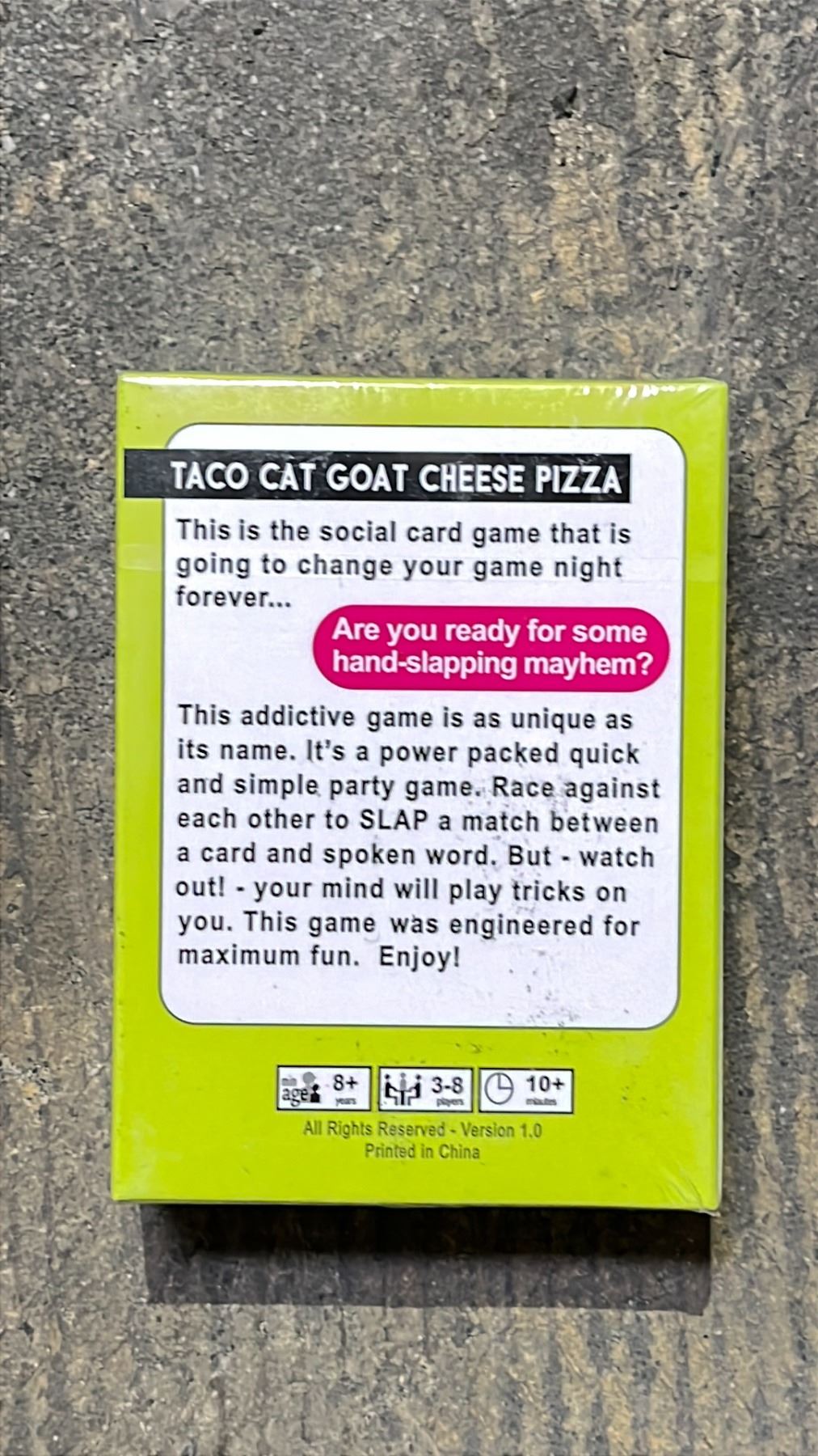 BOX OF 'TACO CAT GOAT CHEESE PIZZA' CARD GAME