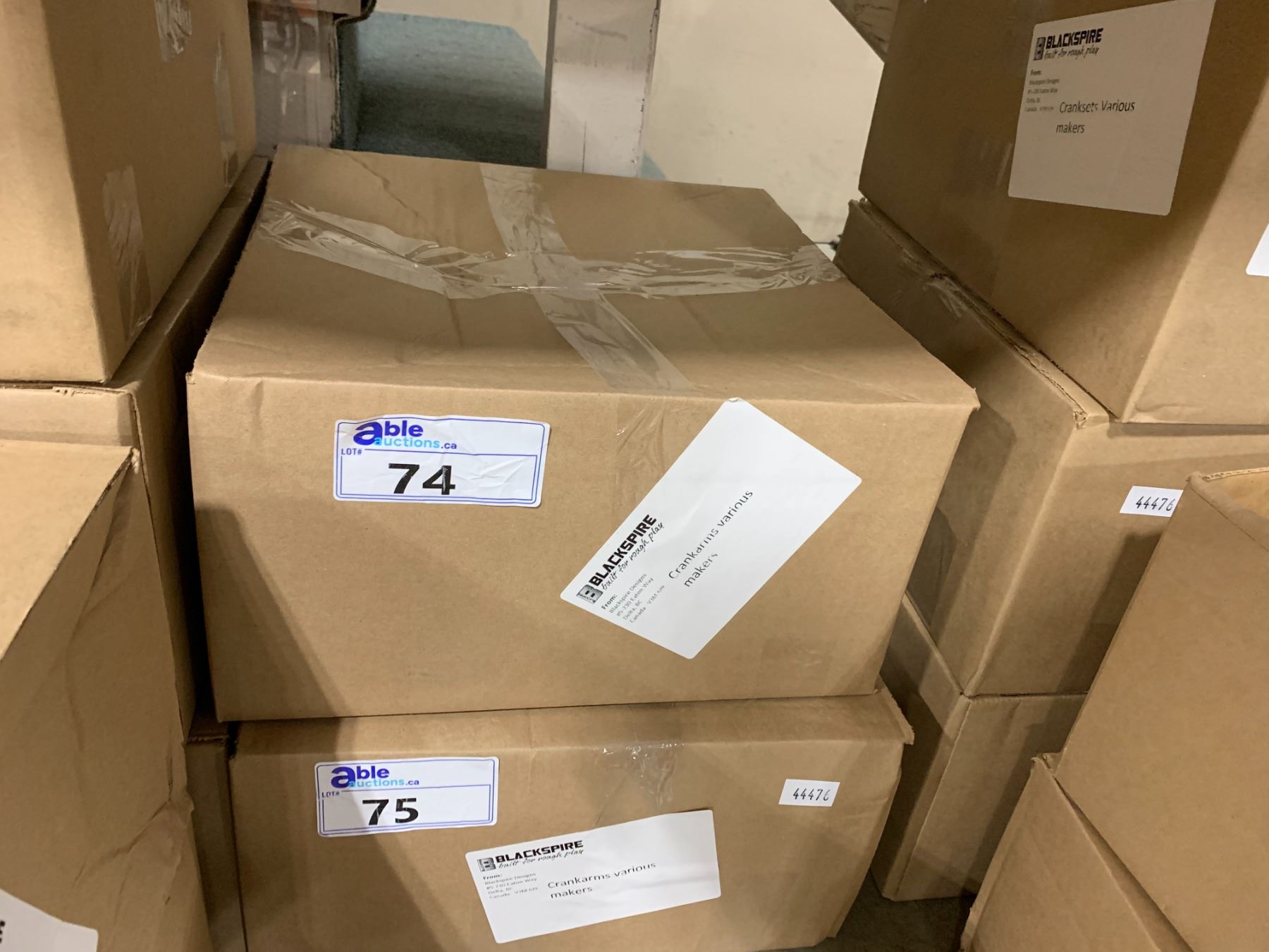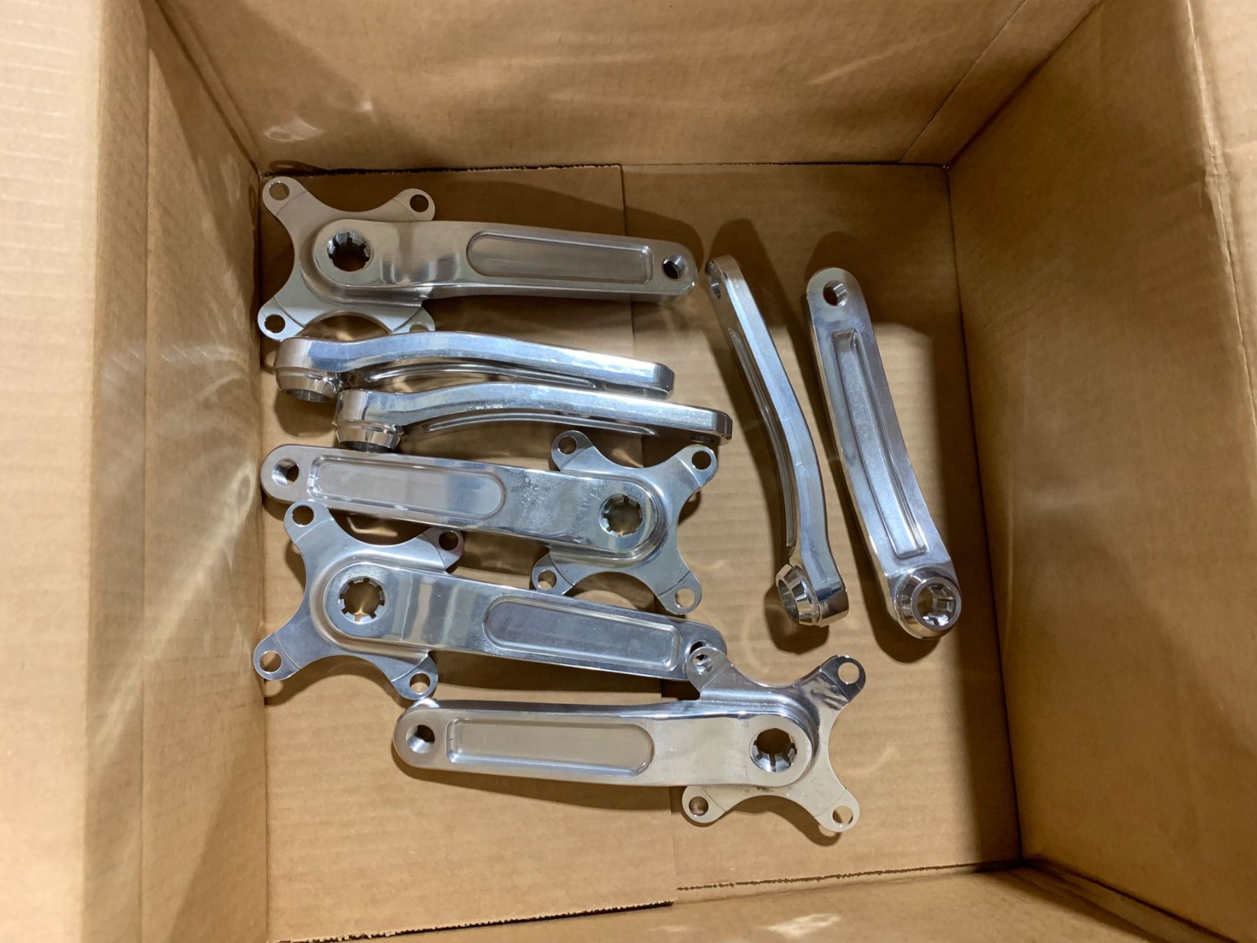 BOX OF VARIOUS BLACKSPIRE CRANKARMS & MAKERS BIKE PARTS