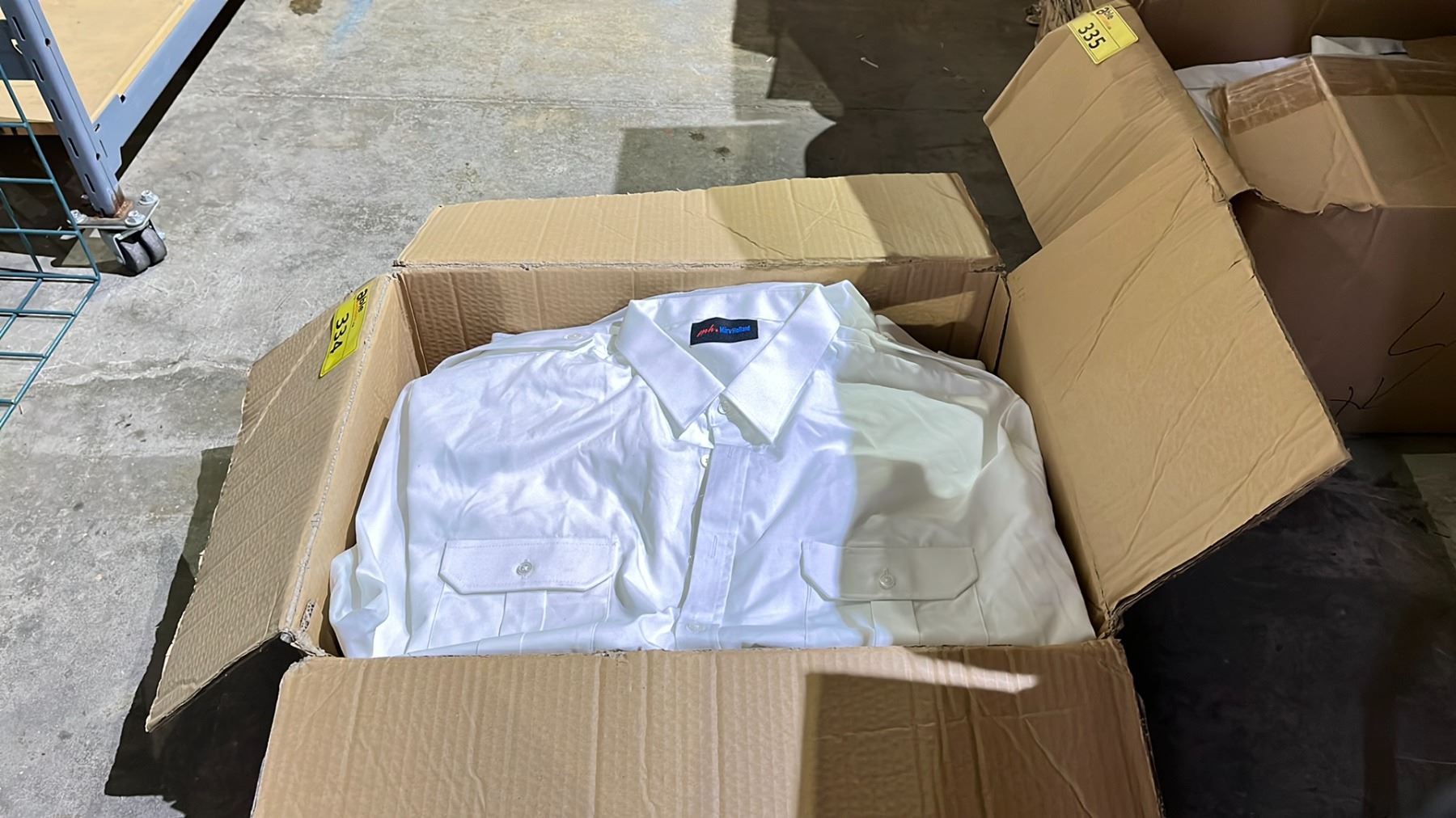 BOX OF WHITE COLLARED SHIRTS (VARIOUS SIZES)