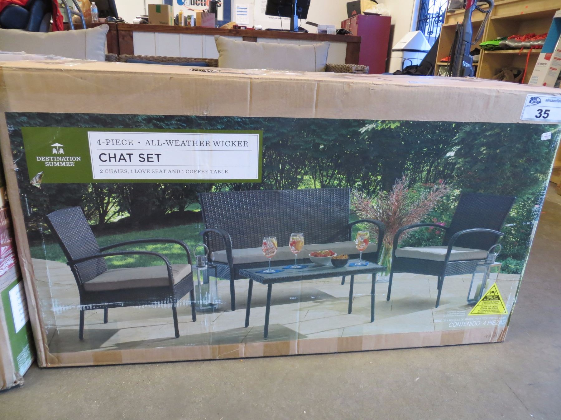 BOXED 4 PIECE ALL WEATHER WICKER CHAT SET (2 CHAIRS, 1 LOVESEAT, 1 COFFEE TABLE)