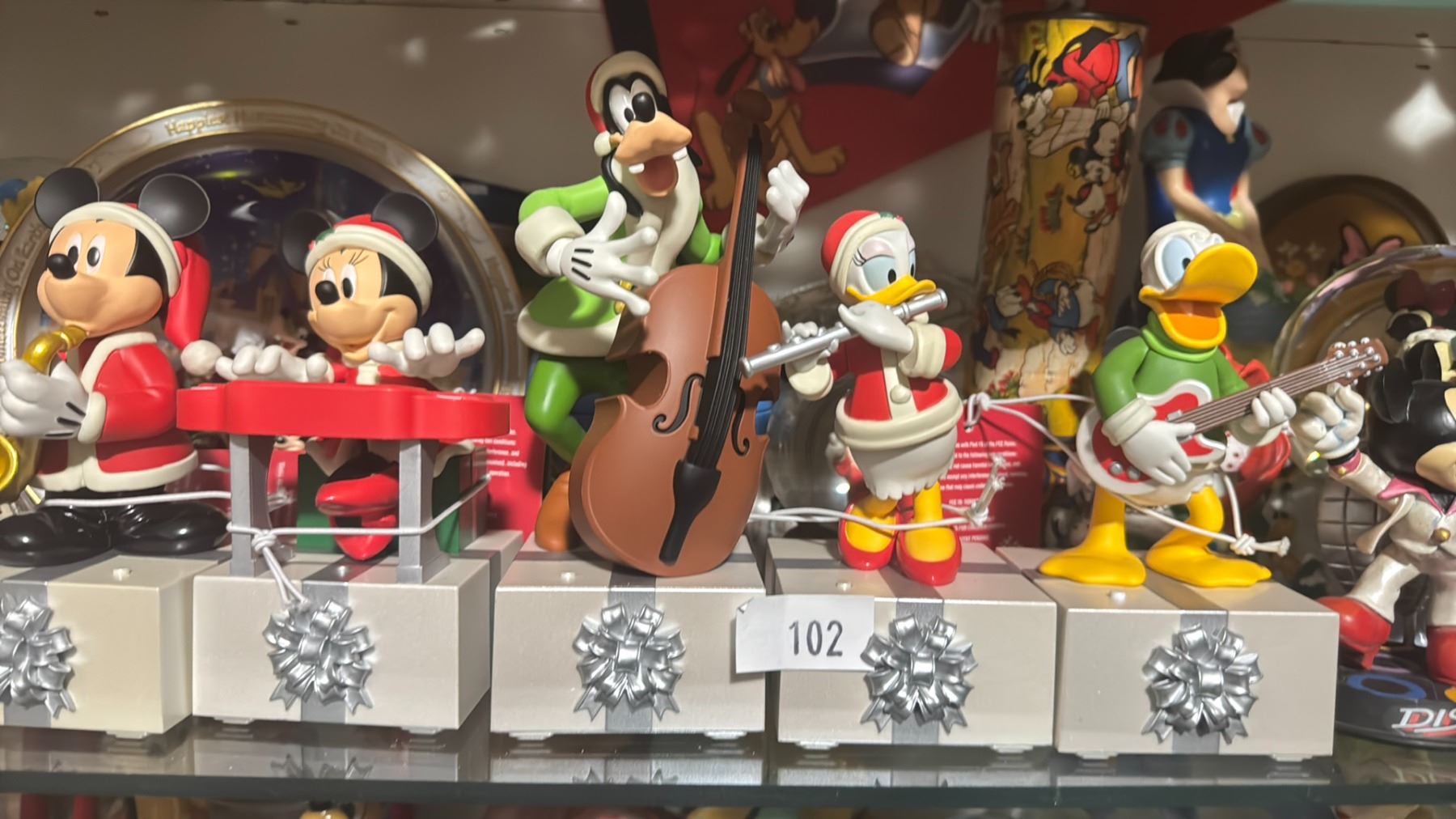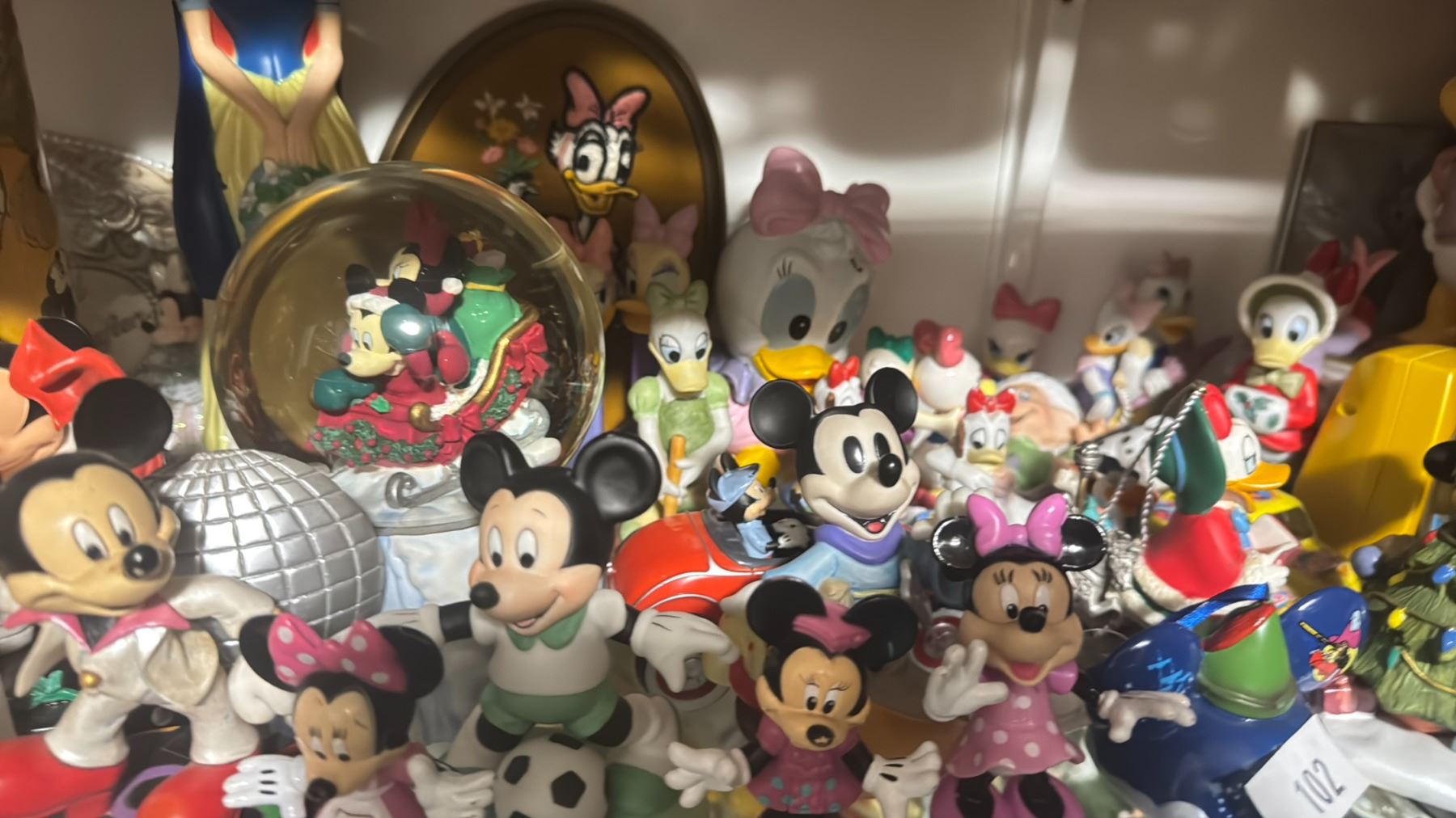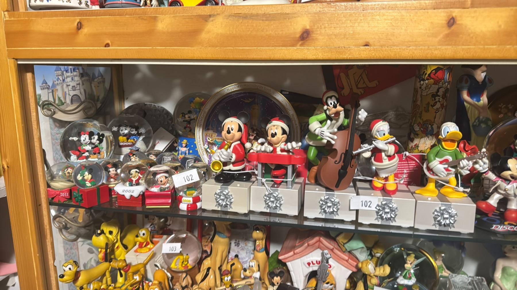 *BOXED UP* CELEBRATORY & CHRISTMAS LOT WITH SNOW GLOBES FROM NUMEROUS YEARS, DISNEYLAND PLATE, DONALD & DAISY DUCK FIGURINES, NUMEROUS VINTAGE FIGURINES, MICKEY & CREW MUSICAL CHRISTMAS BAND SET & MORE