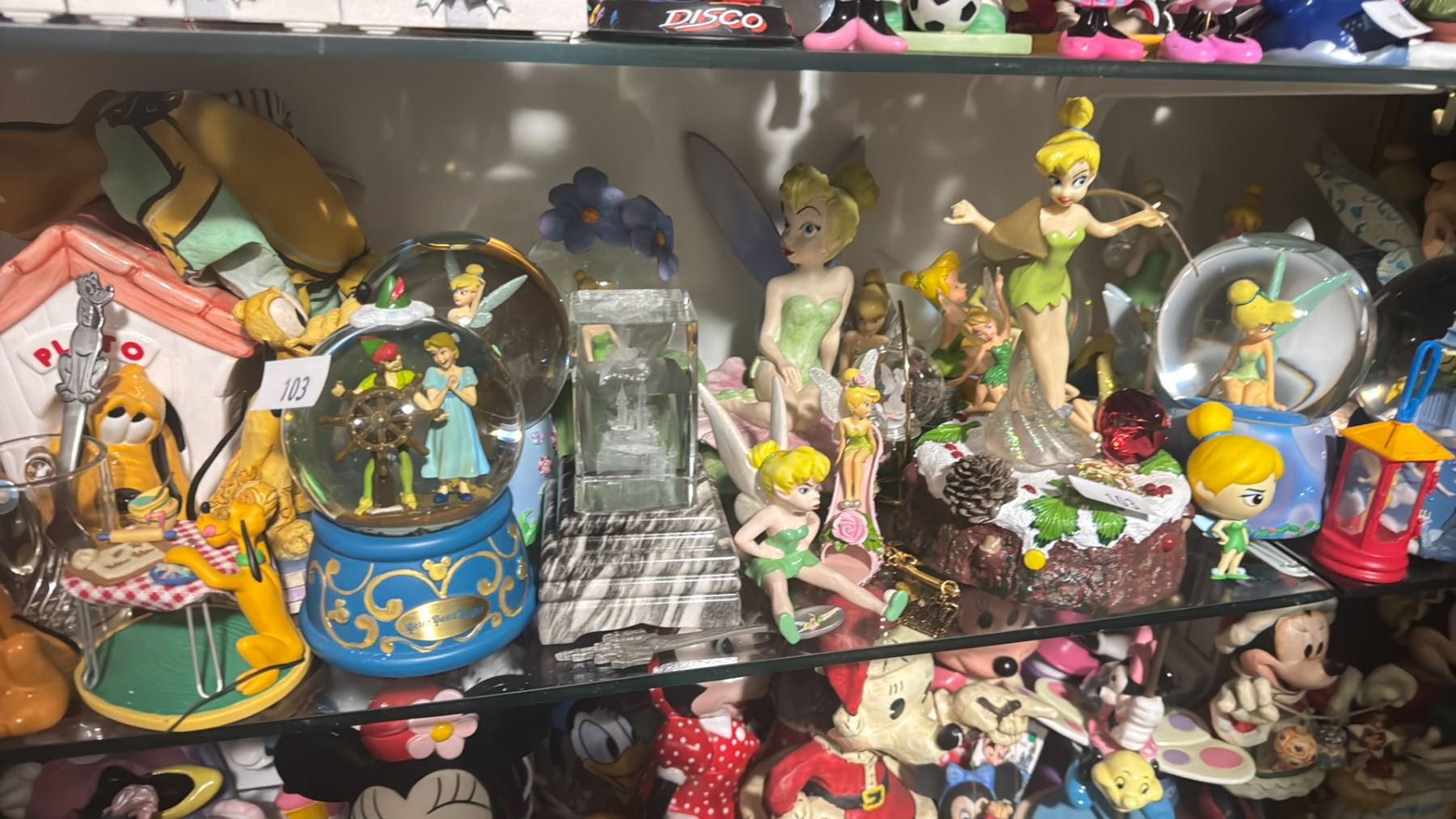 *BOXED UP* LARGE PLUTO & TINKERBELL COLLECTION INCLUDING FIGURINES, GLOBES, SPOONS, PLUTO IN THE DOGHOUSE, MANY TINKERBELL FIGURINES OVER THE YEARS & MORE, A BIT OF PETER PAN, COLLECTORS PIN, VINTAGE ITEMS & MORE