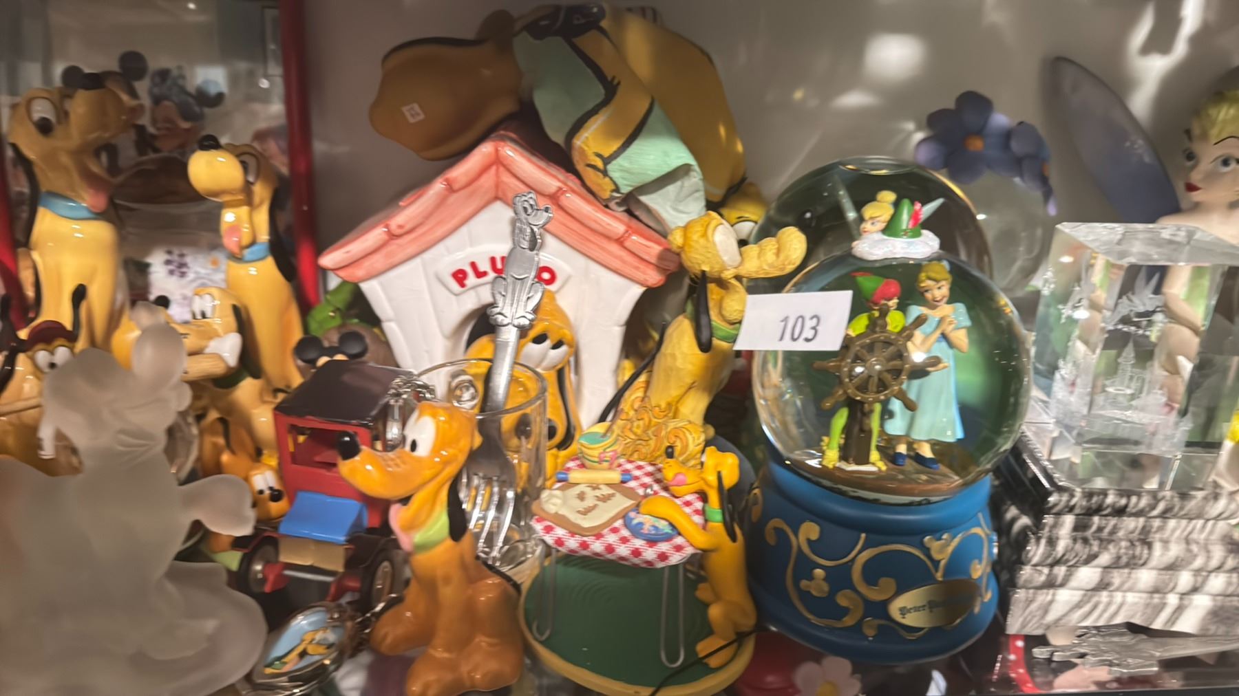 *BOXED UP* LARGE PLUTO & TINKERBELL COLLECTION INCLUDING FIGURINES, GLOBES, SPOONS, PLUTO IN THE