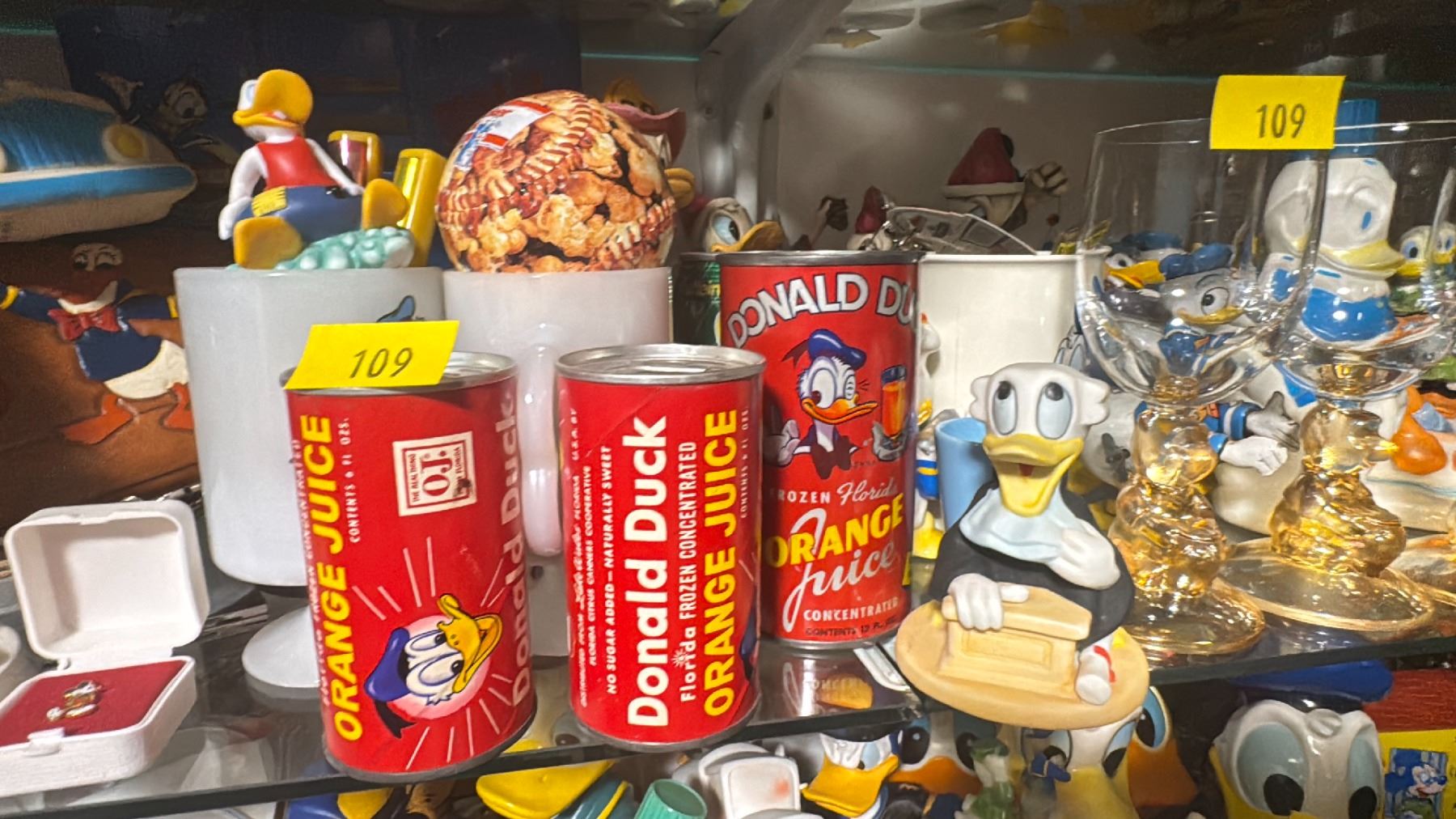 *BOXED UP* MANY VINTAGE PIECES OF DONALD DUCK, VINTAGE DONALD DUCK JUICE FROM THE 1950'S, VINTAGE