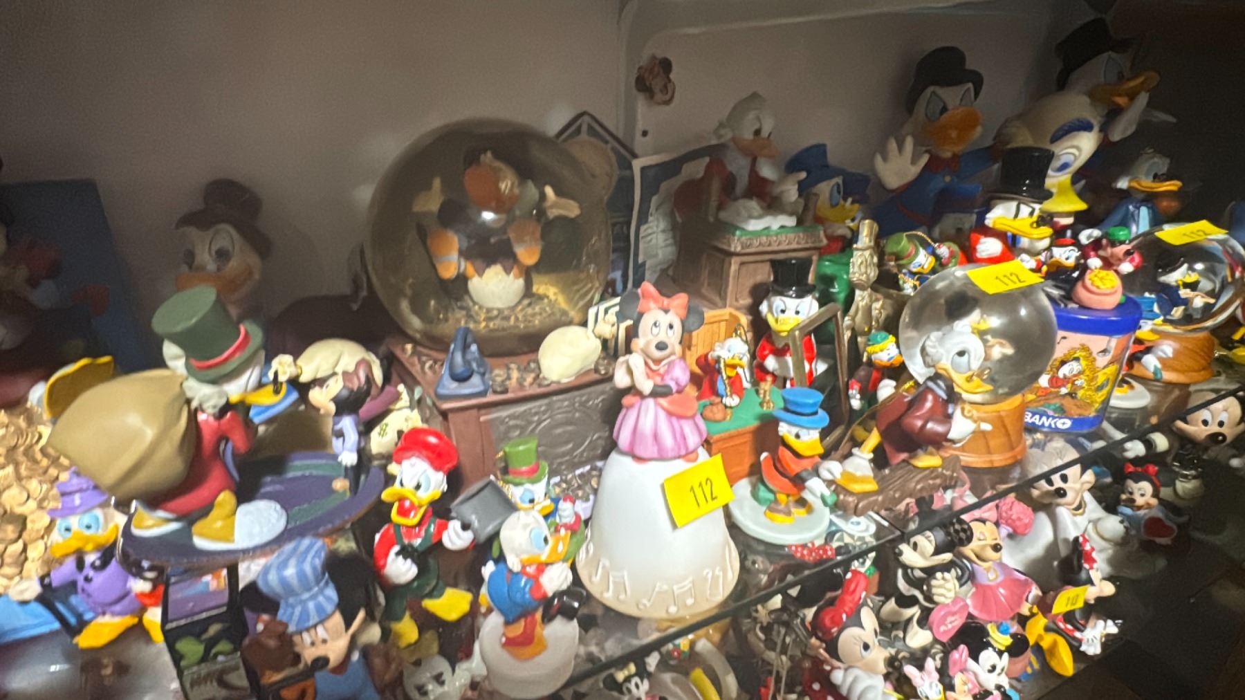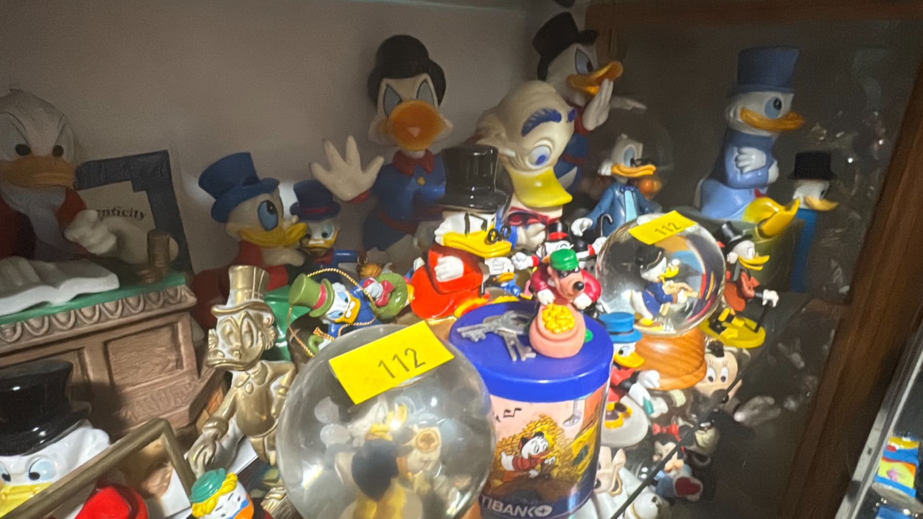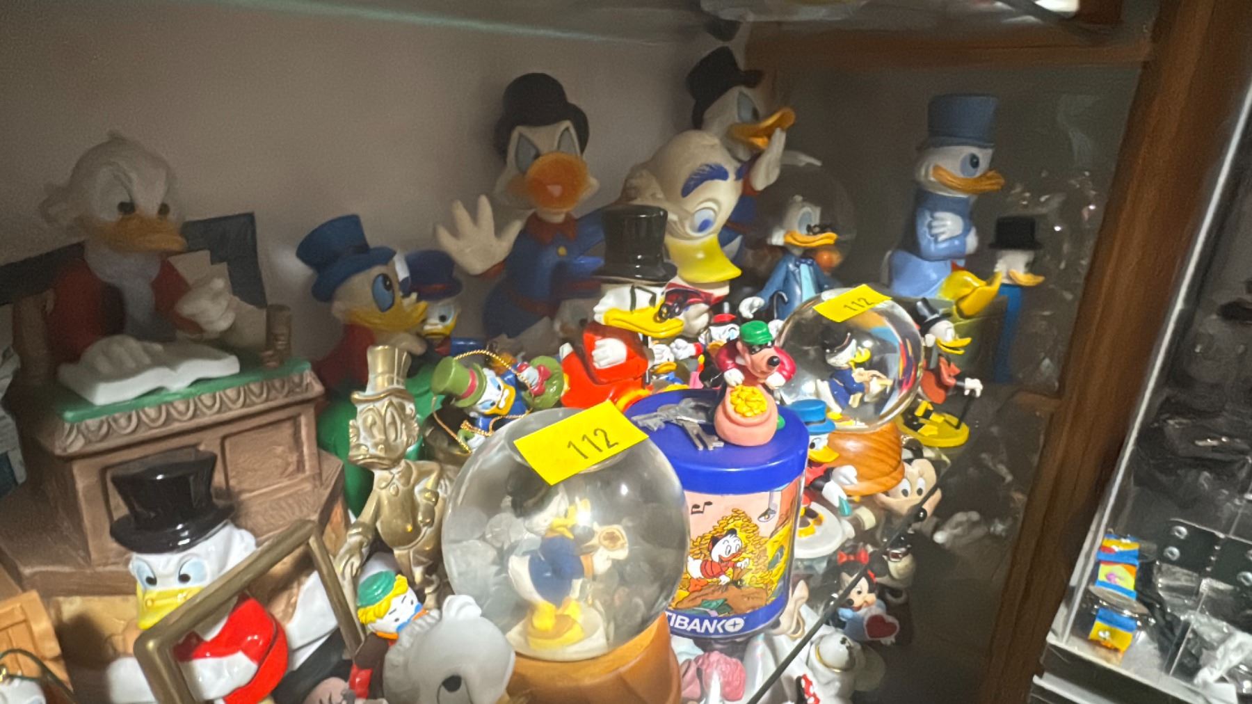 *BOXED UP* NUMEROUS VINTAGE PIECES, MICKEY FROM 1950'S, SCROUGE MCDUCK FIGURINES OVER THE YEARS, SCROUGE GLOBES, MINNIE BELL, MICKEY THE TRAIN CONDUCTOR, DISNEY RUBIKS CUBE, DONALD DUCK FIGURINES & MORE