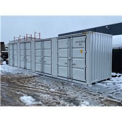 BRAND NEW 40FT STORAGE SHIPPING CONTAINER WITH 4 SIDE DOORS AND 1 REAR DOOR, 9'6" TALL