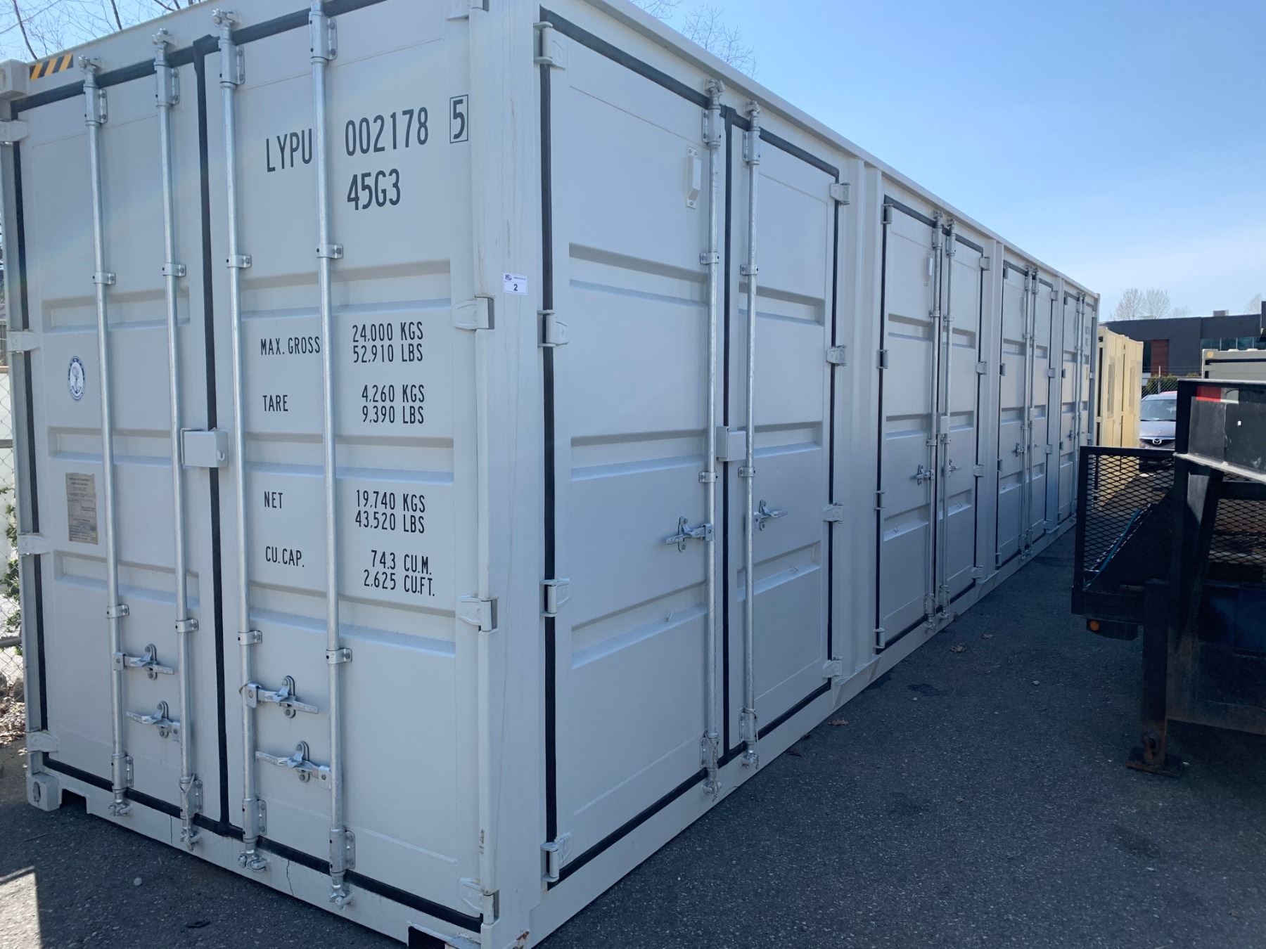 BRAND NEW 40FT STORAGE SHIPPING CONTAINER WITH 4 SIDE DOORS AND 1 REAR DOOR 40'L X 8'W X 9'6"H